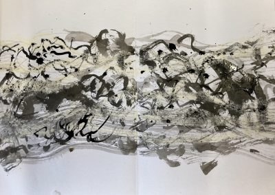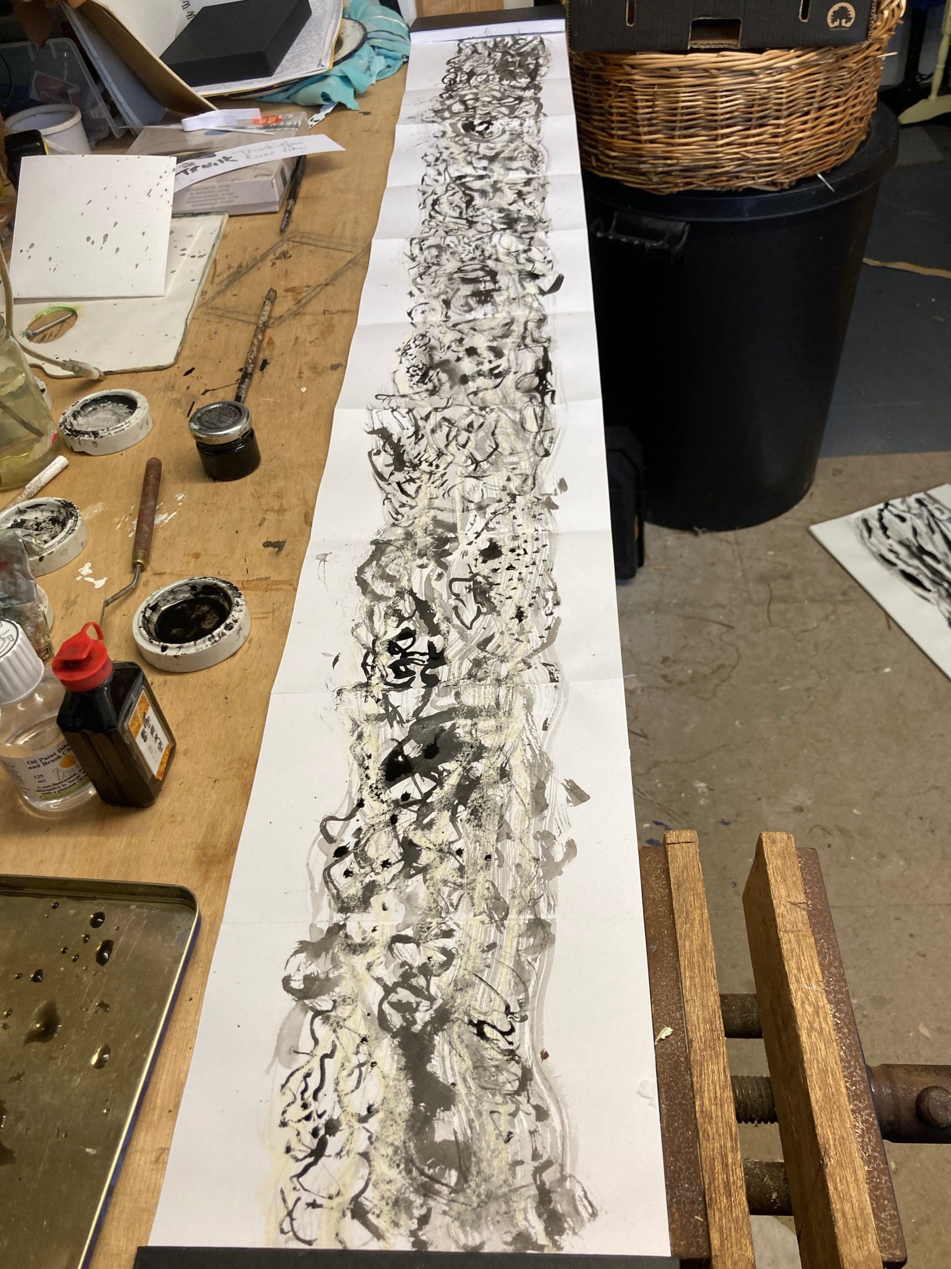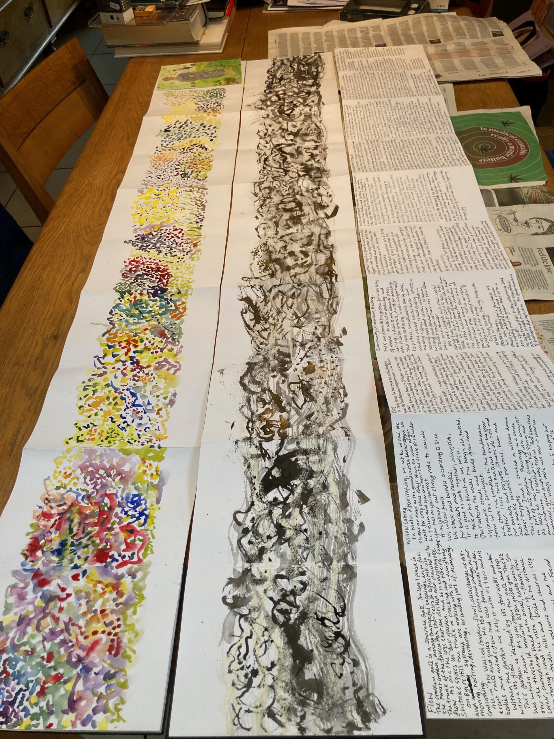 Long Flow piece in accordion sketchbook for Upaya SEBT project. 2021.