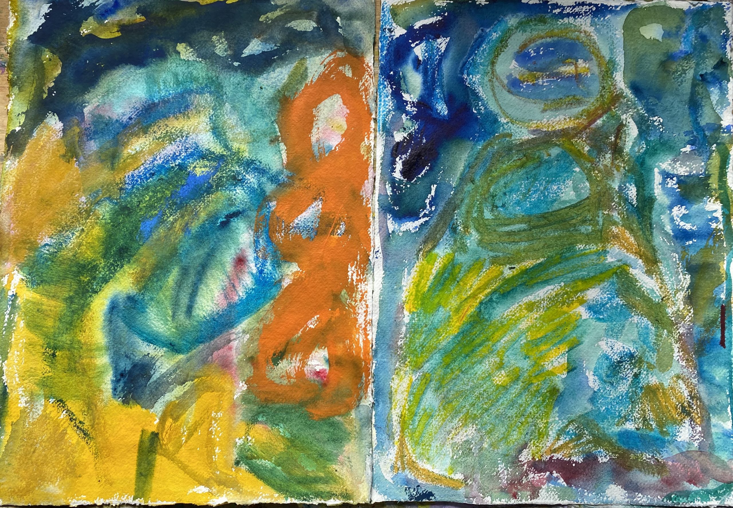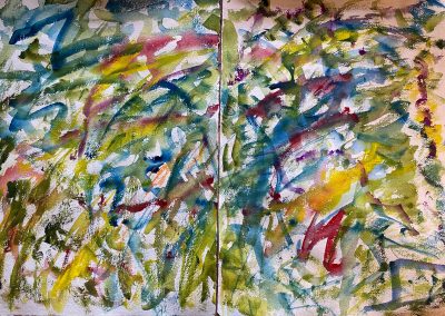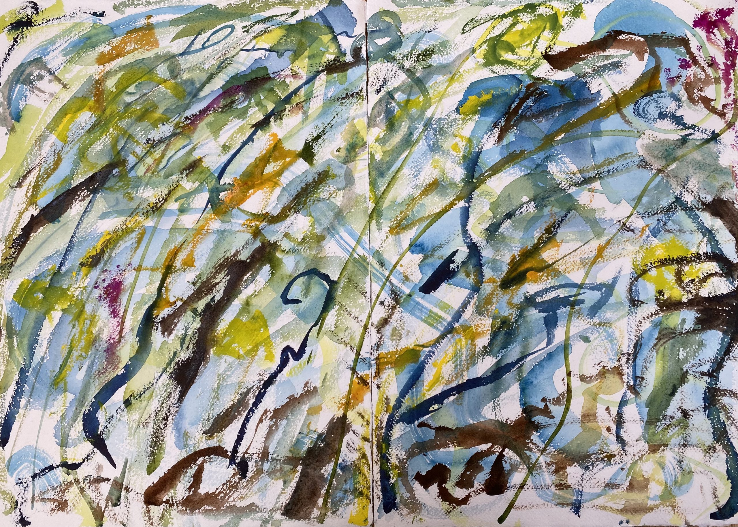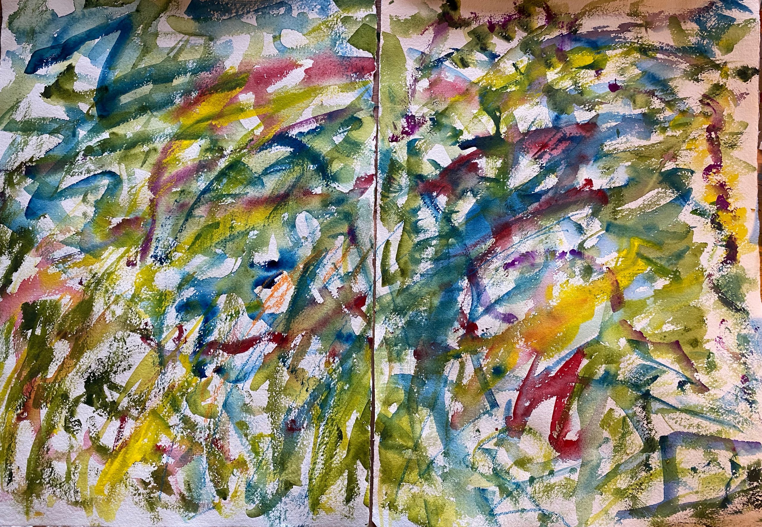 Windy Day, abstract watercolour and gouache on two sheets of Khadi paper. Apr ’24.