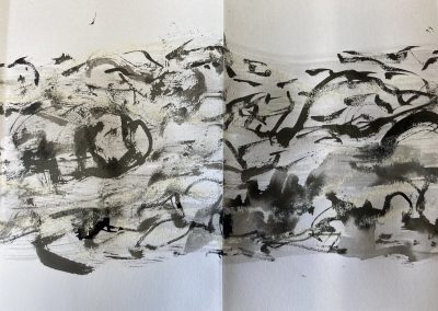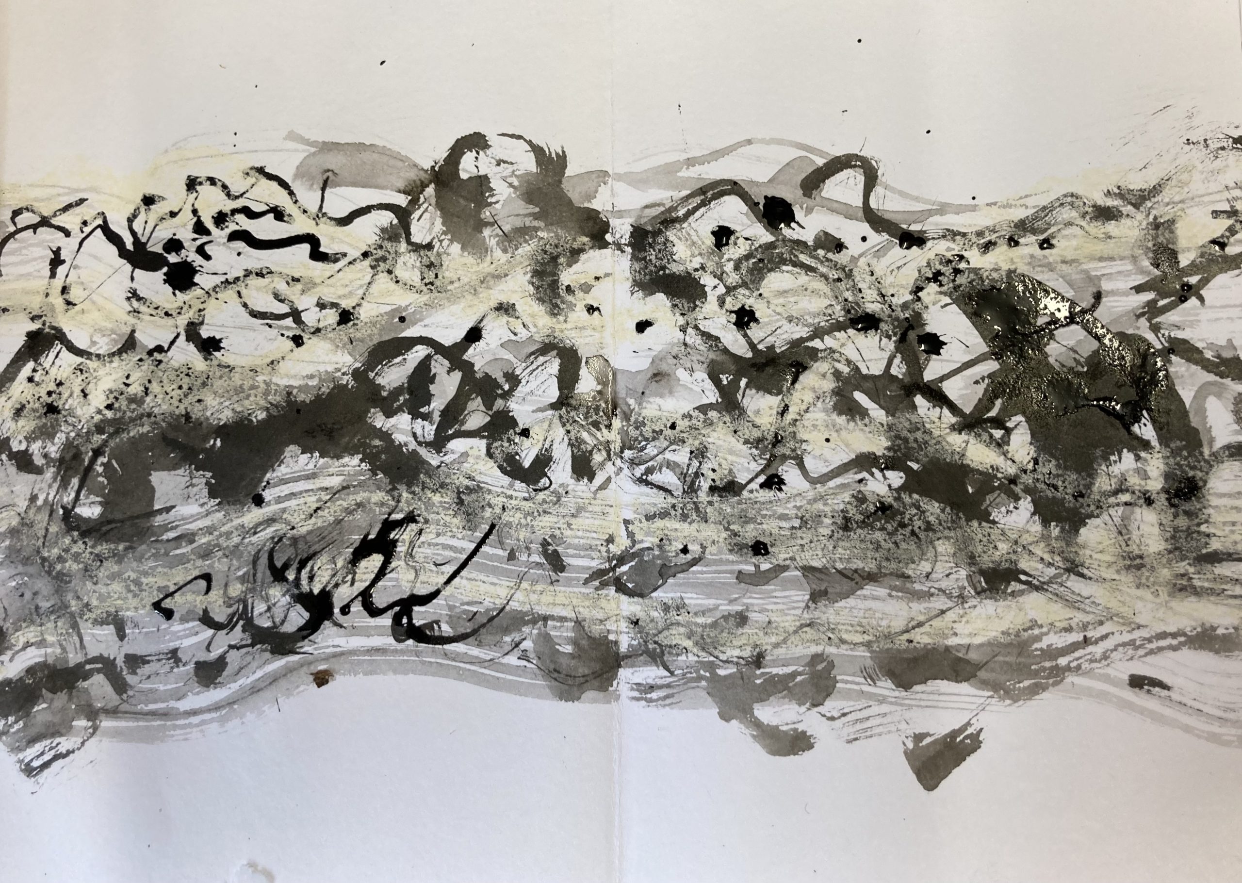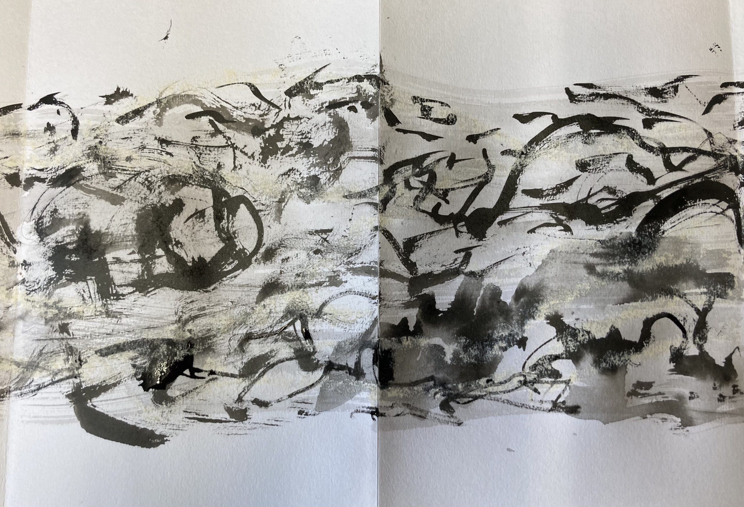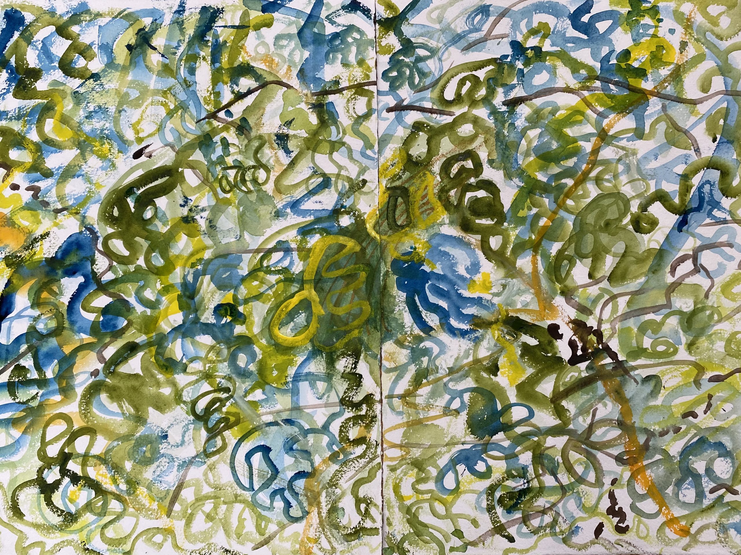 Windy Day, abstract watercolour and gouache on two sheets of Khadi paper. Apr ’24.