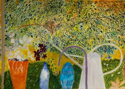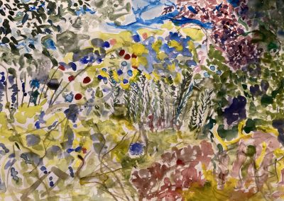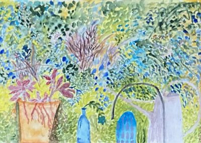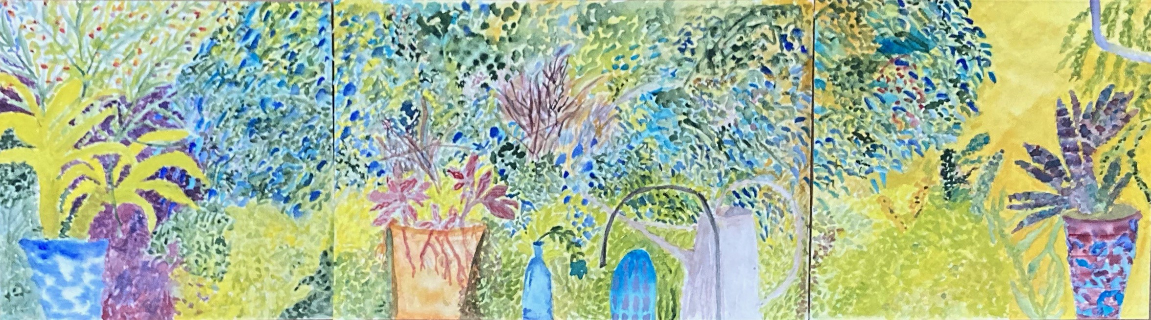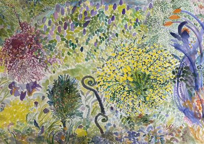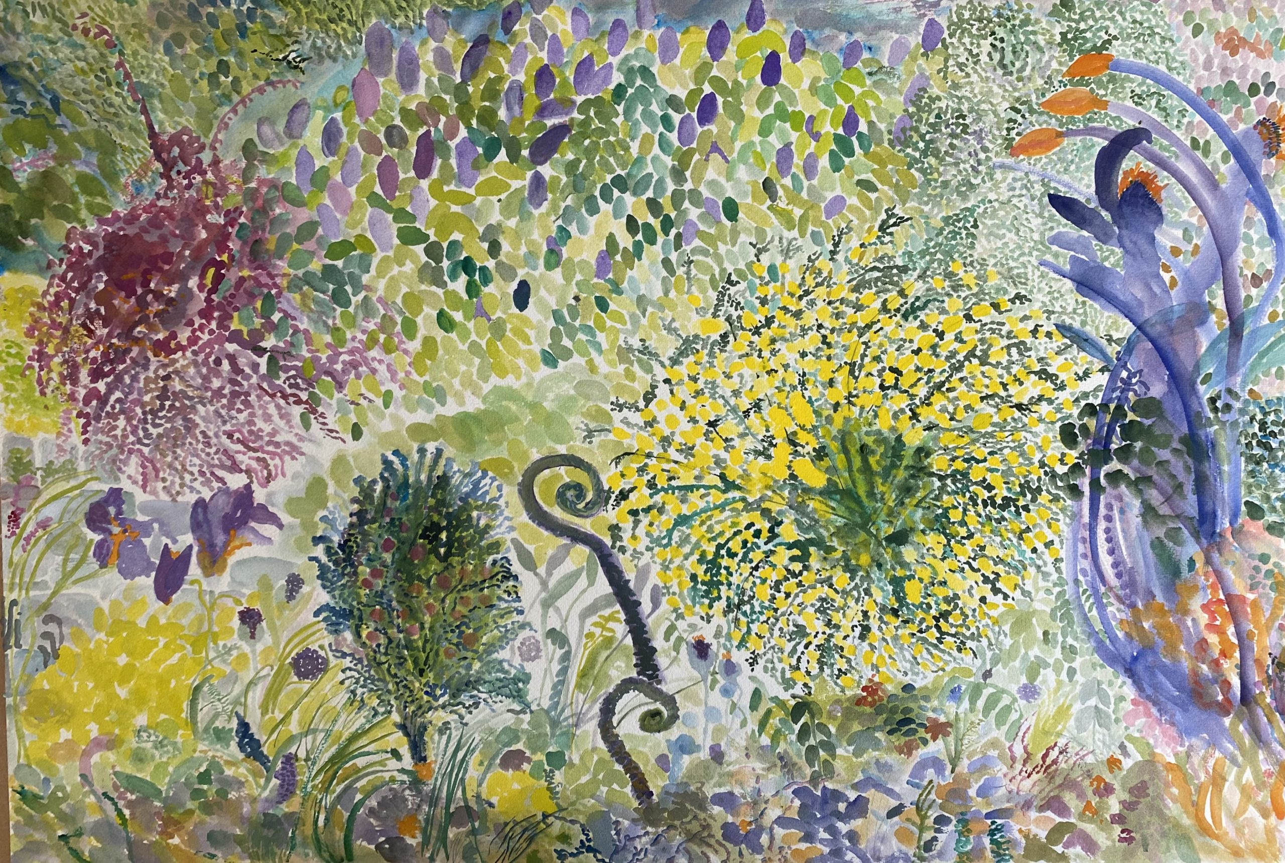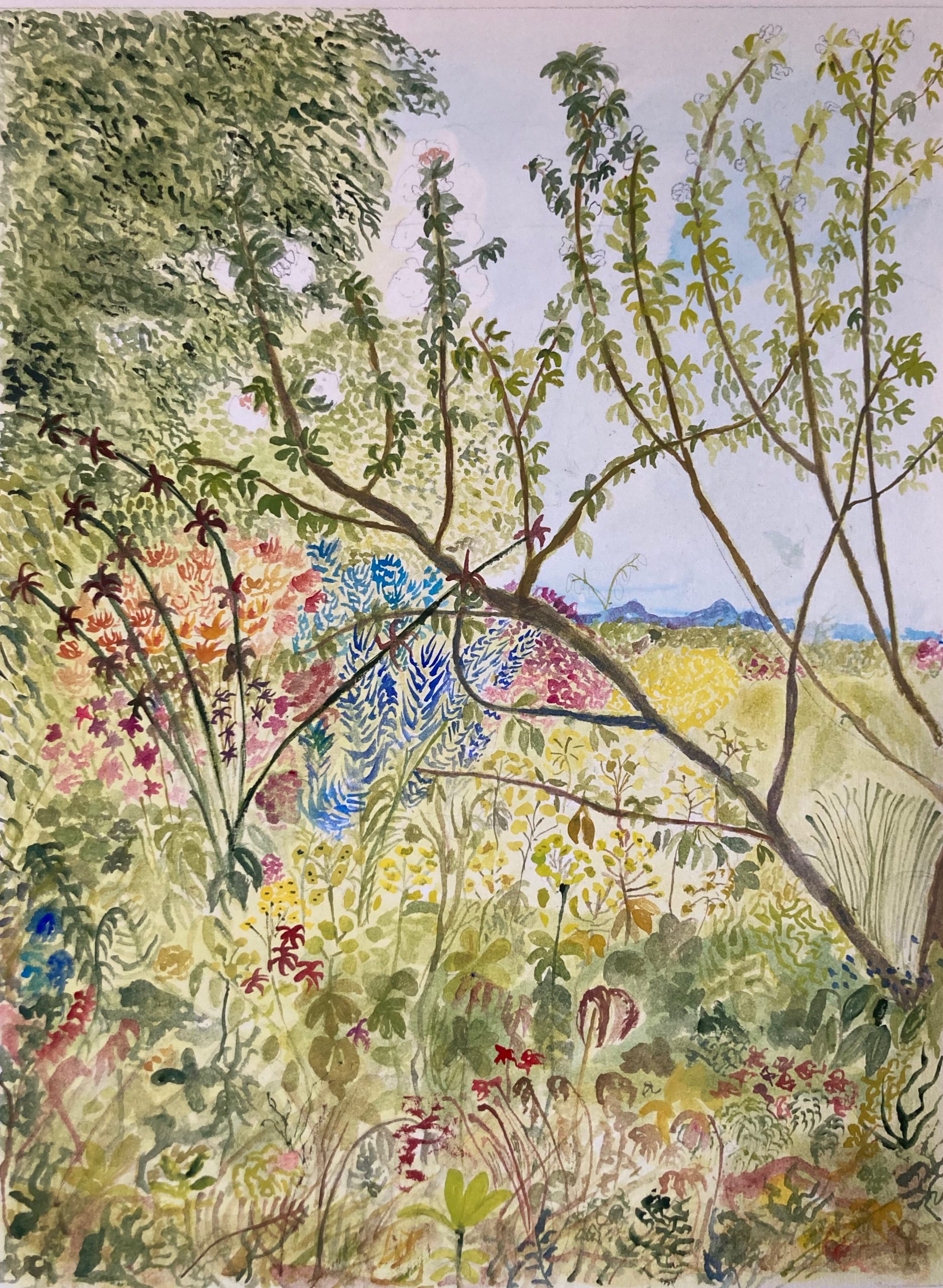 A View down the Garden watercolour and gouache, 51 x 40 cms. June 2021
