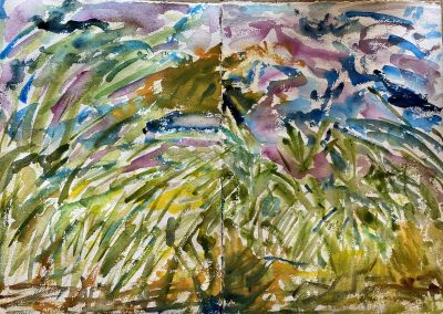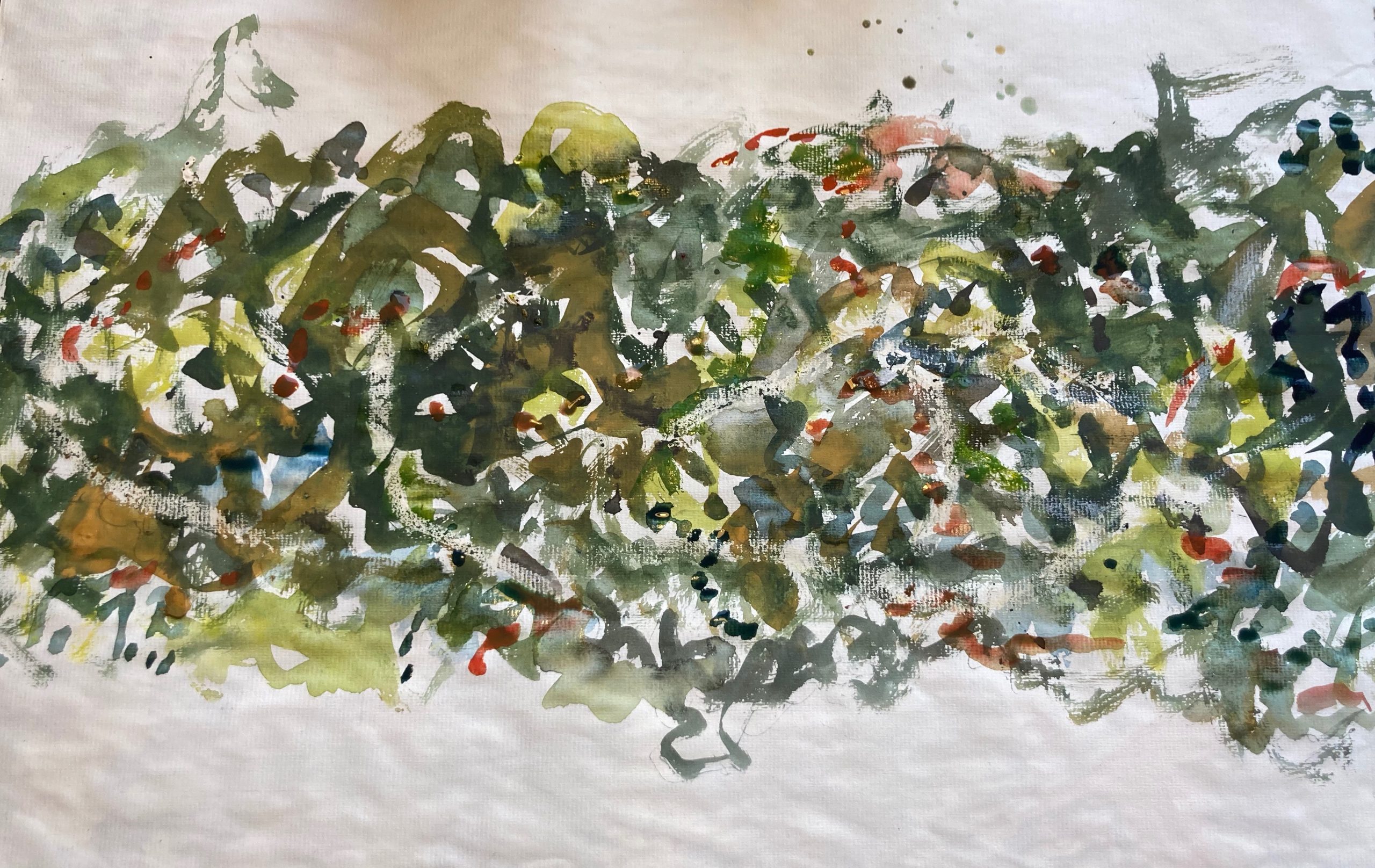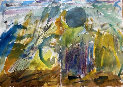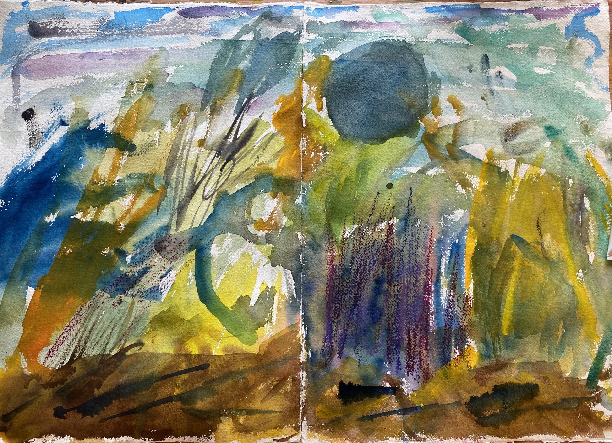 Up by Kilduff, abstract watercolour and gouache on Arches paper. September 2025.