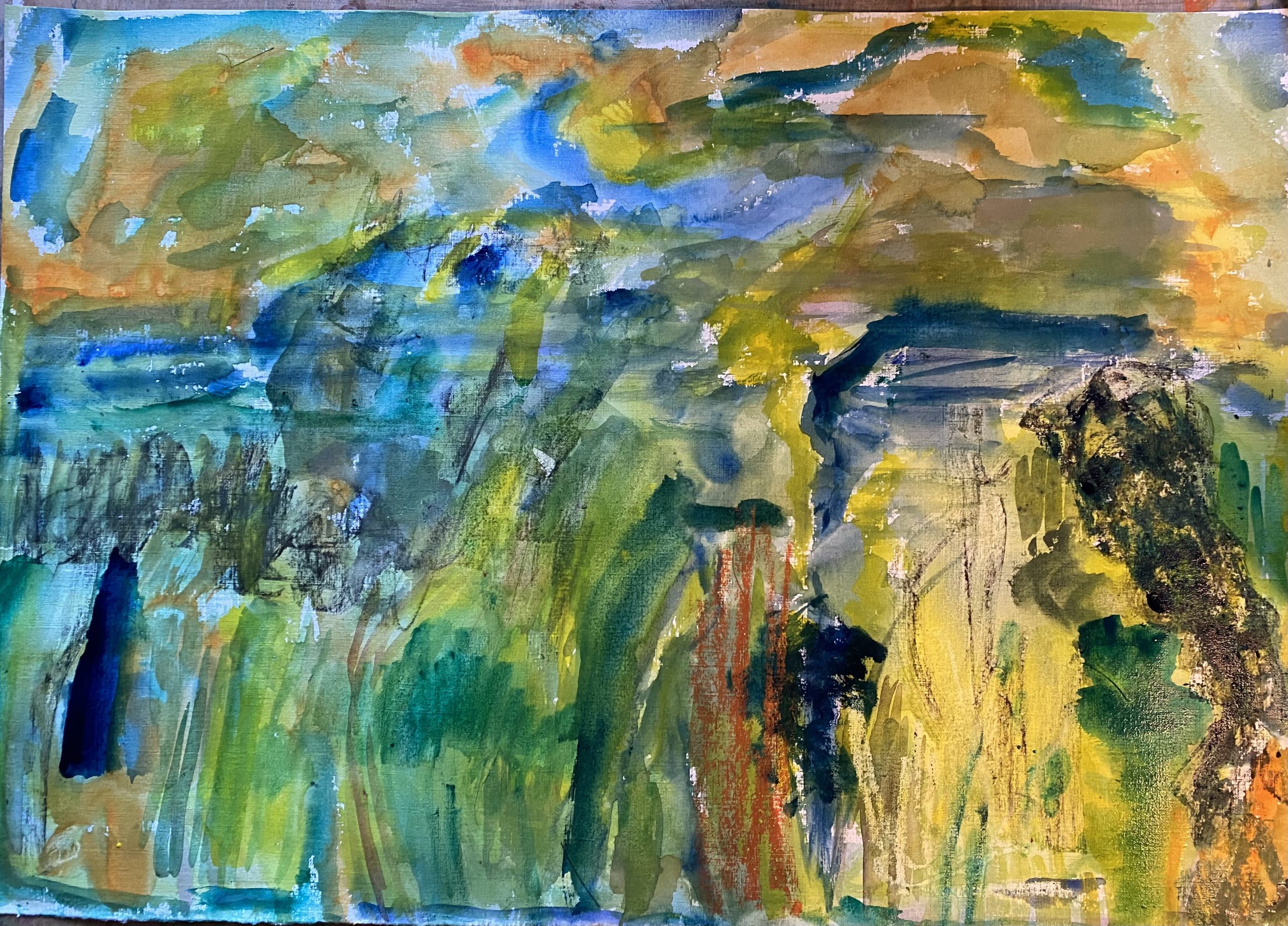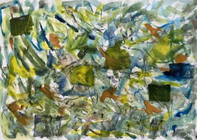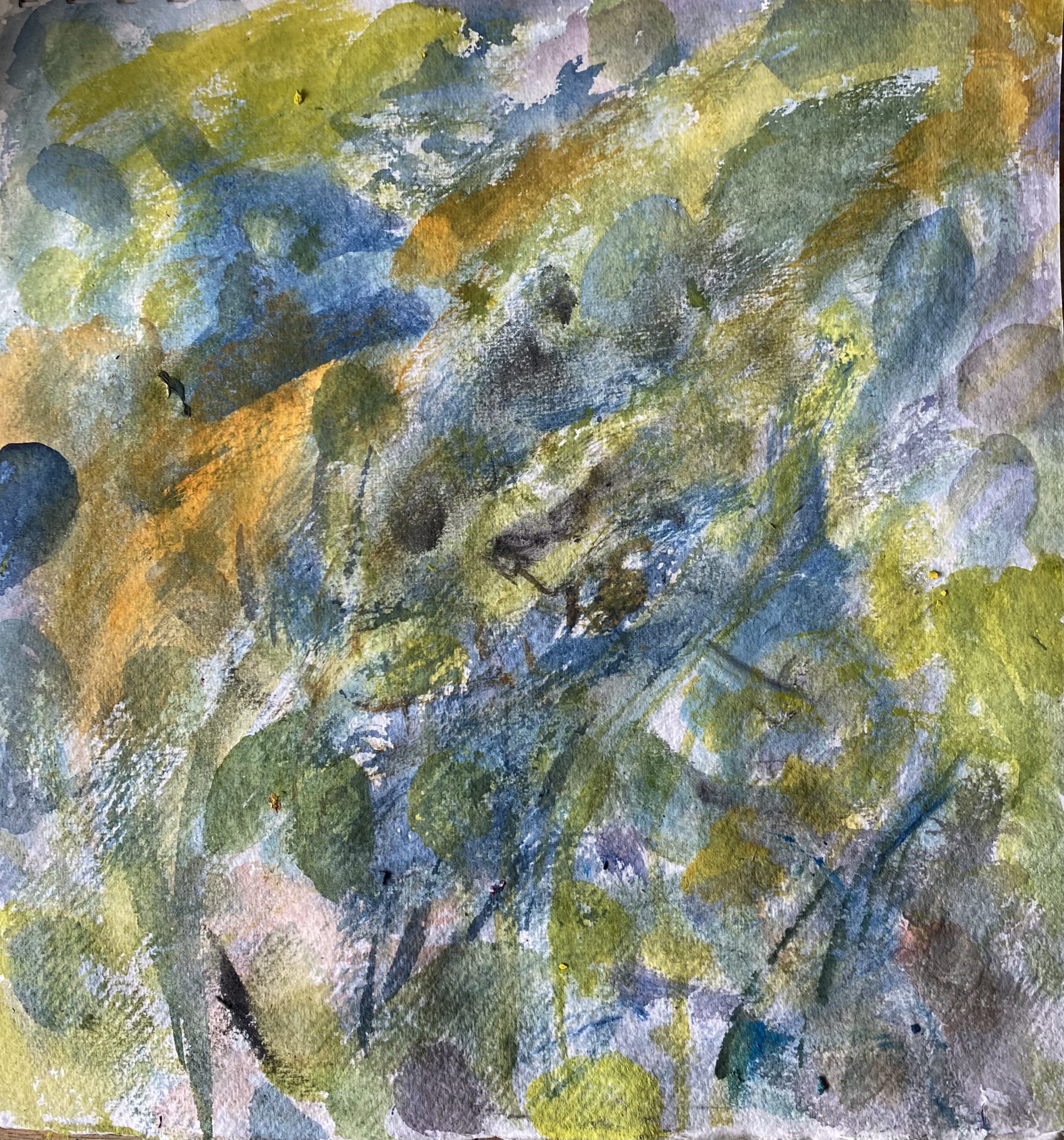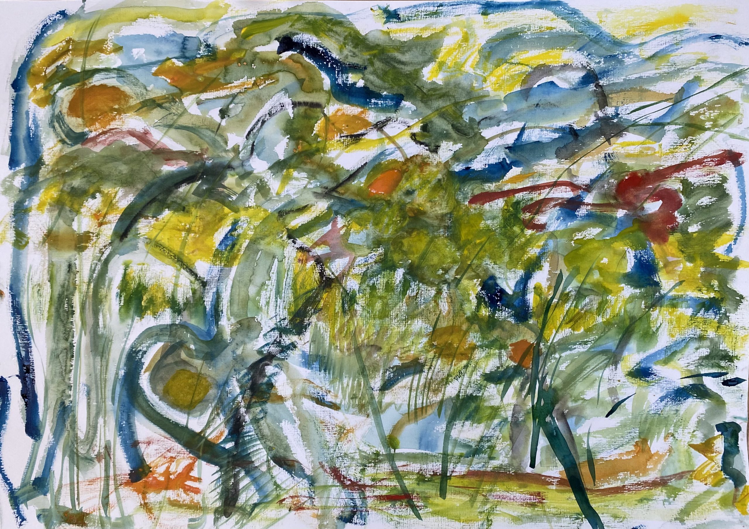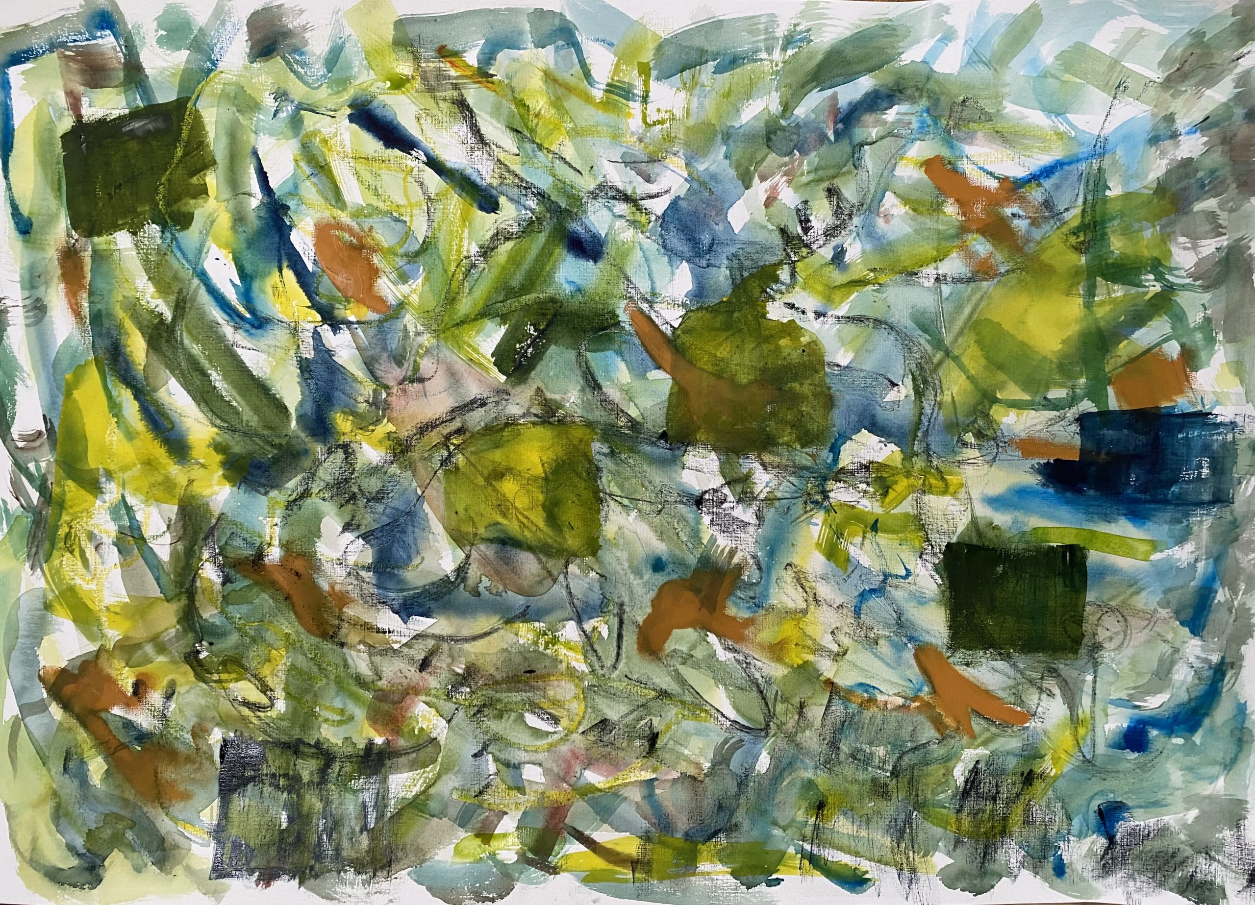 Pond, abstract in watercolour and gouache, 30 x 42 cms. March ’24.