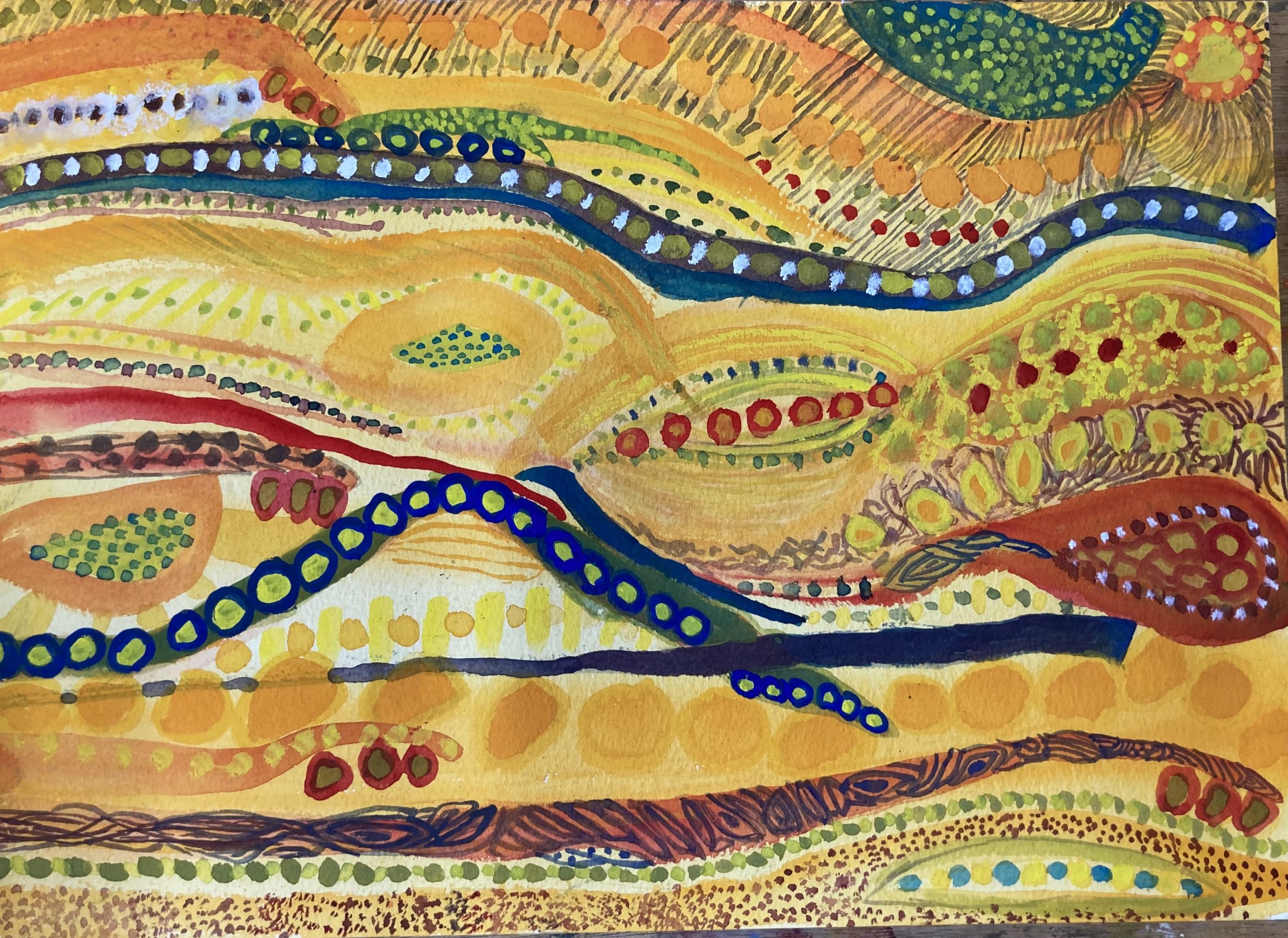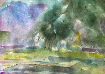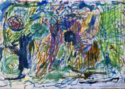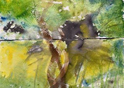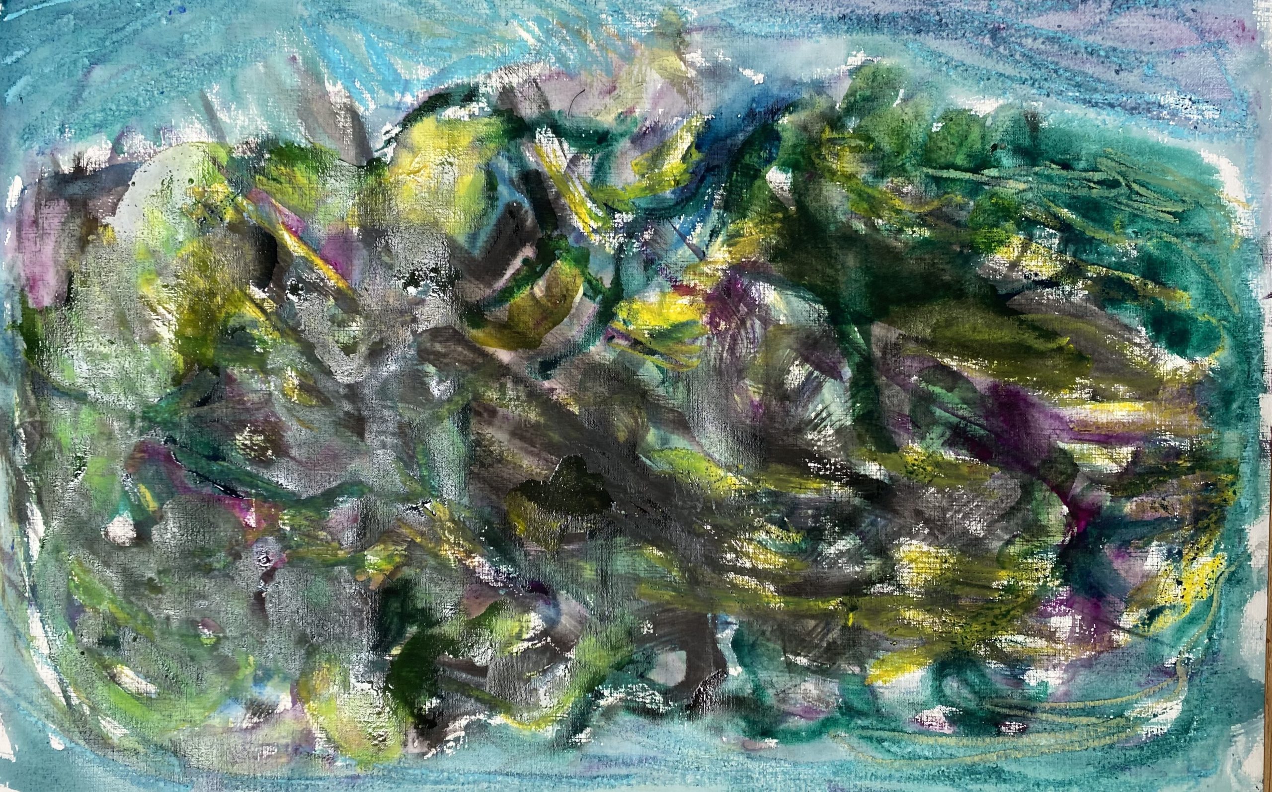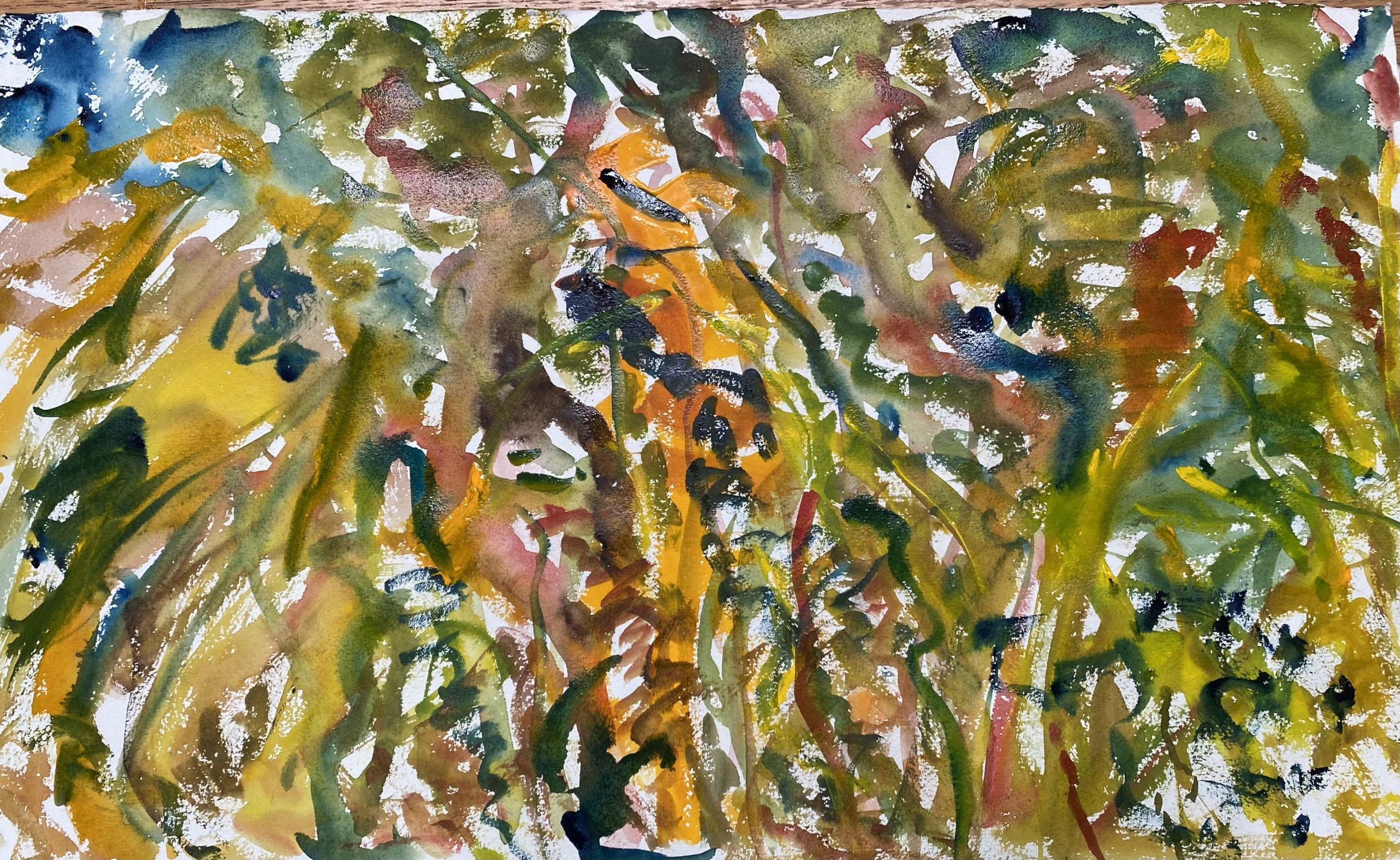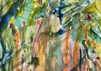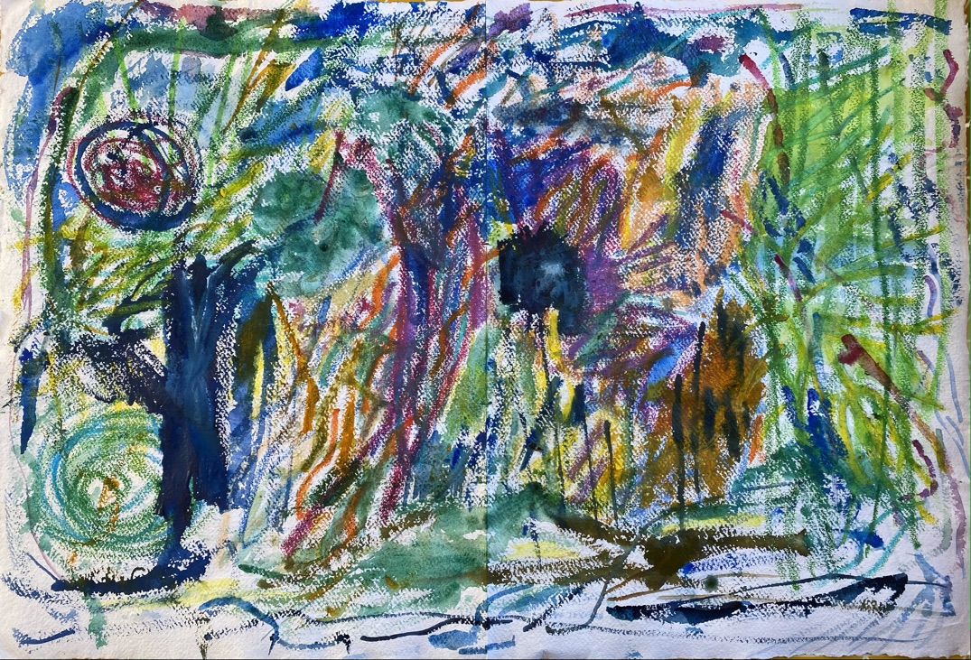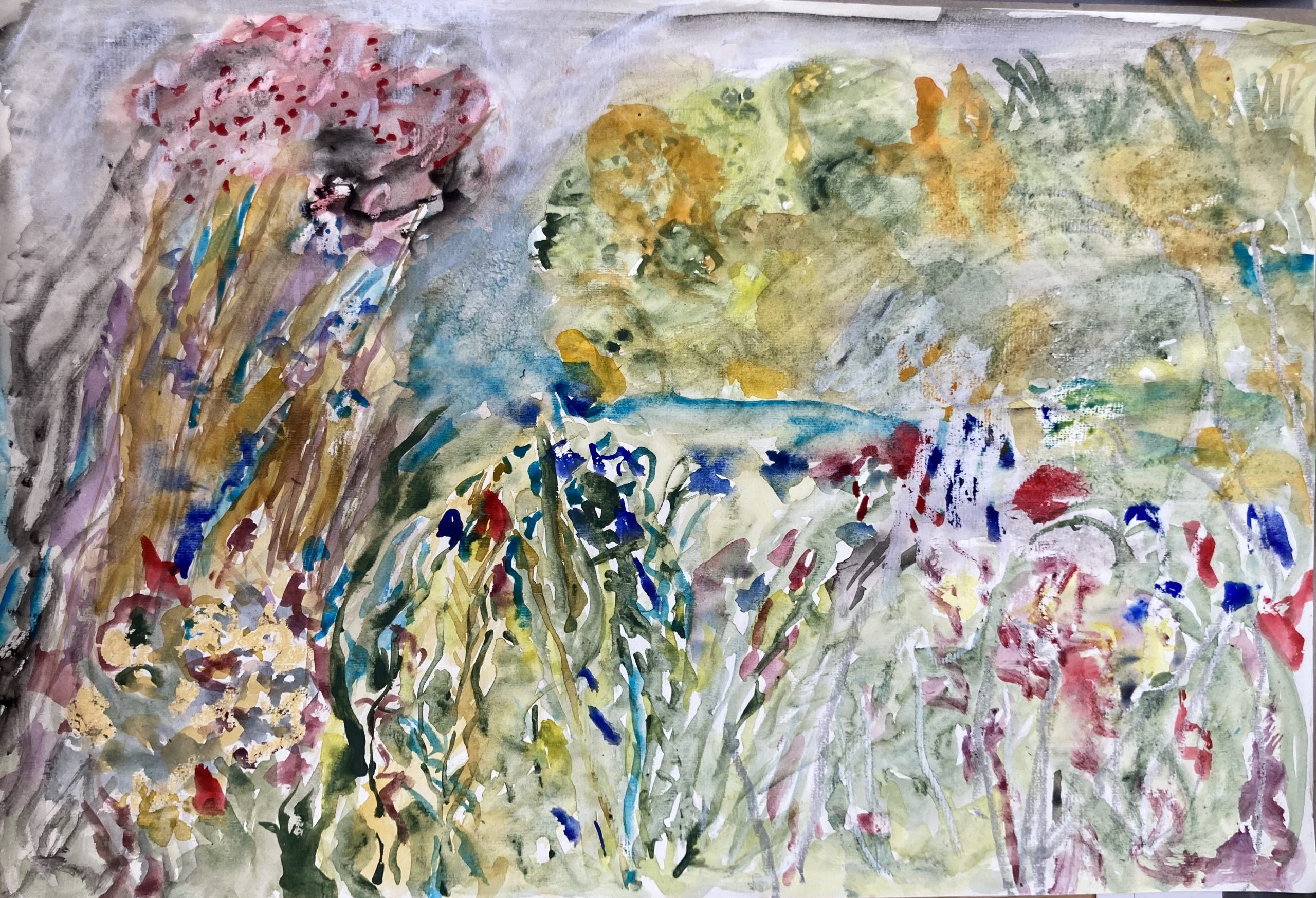 Pond, abstract in watercolour and gouache, 30 x 42 cms. March ’24.