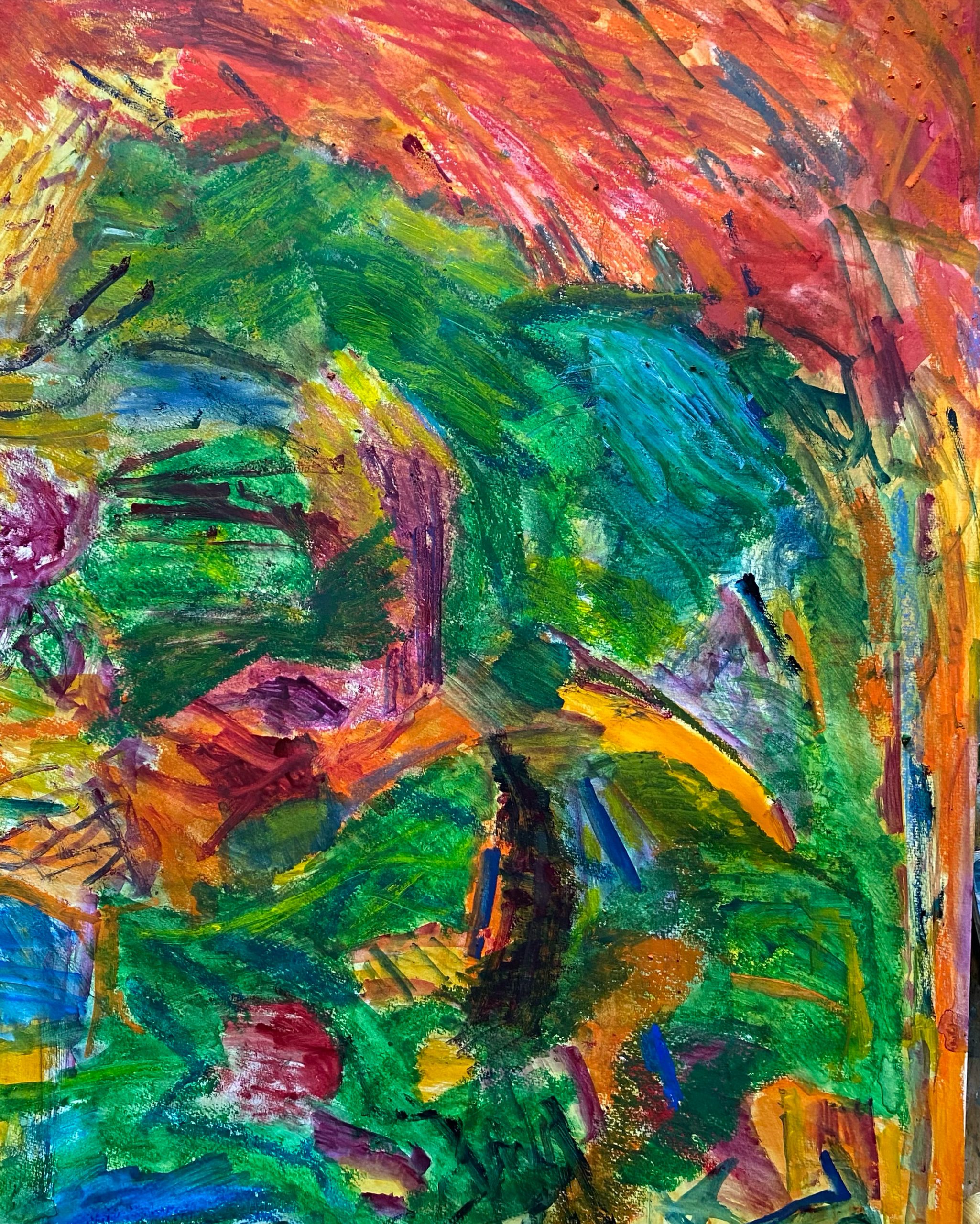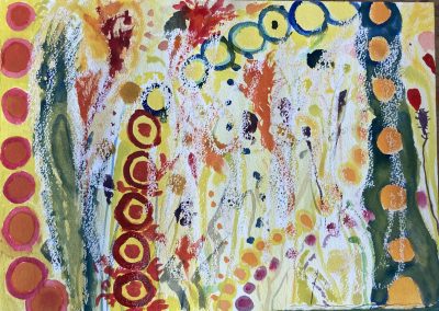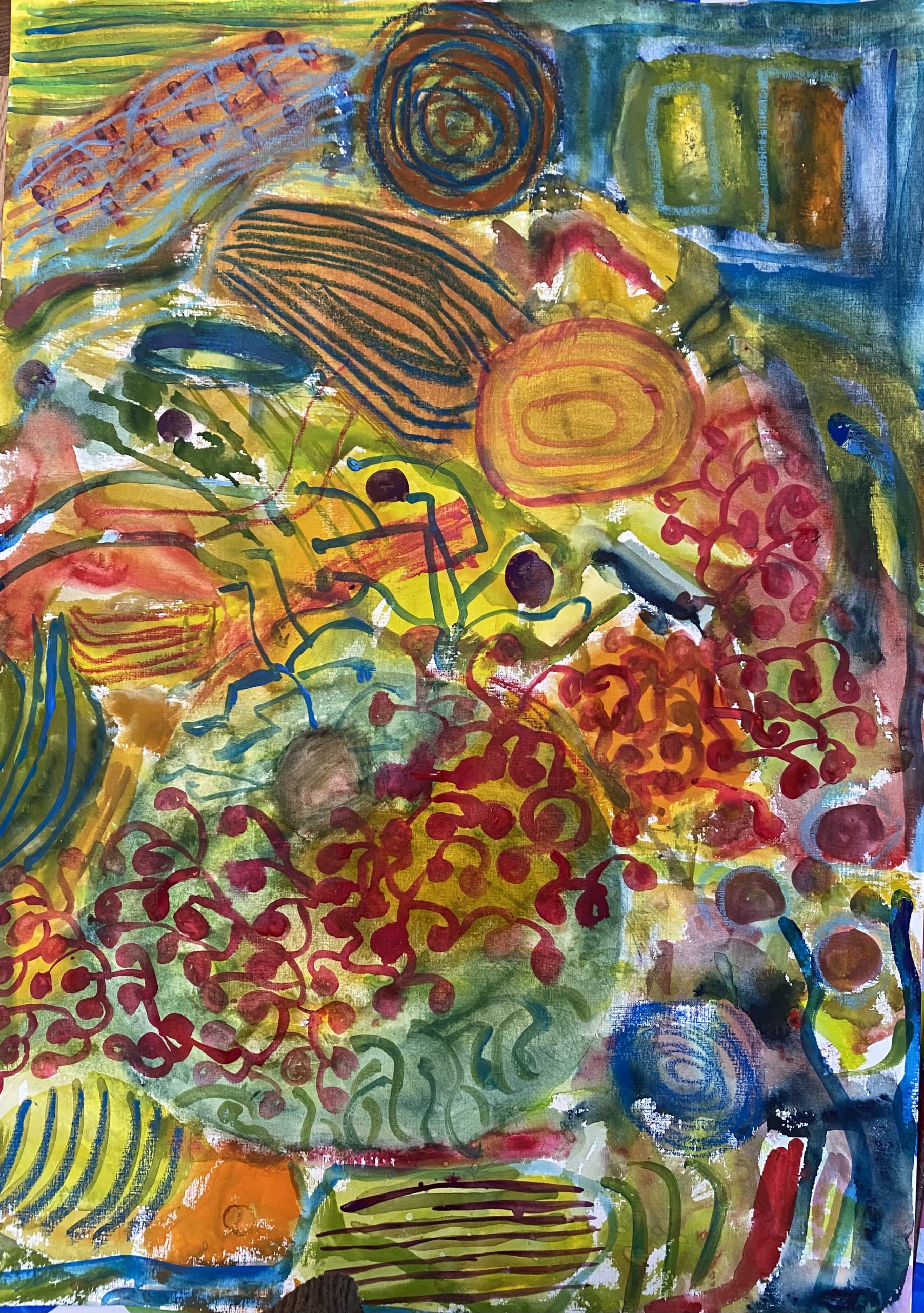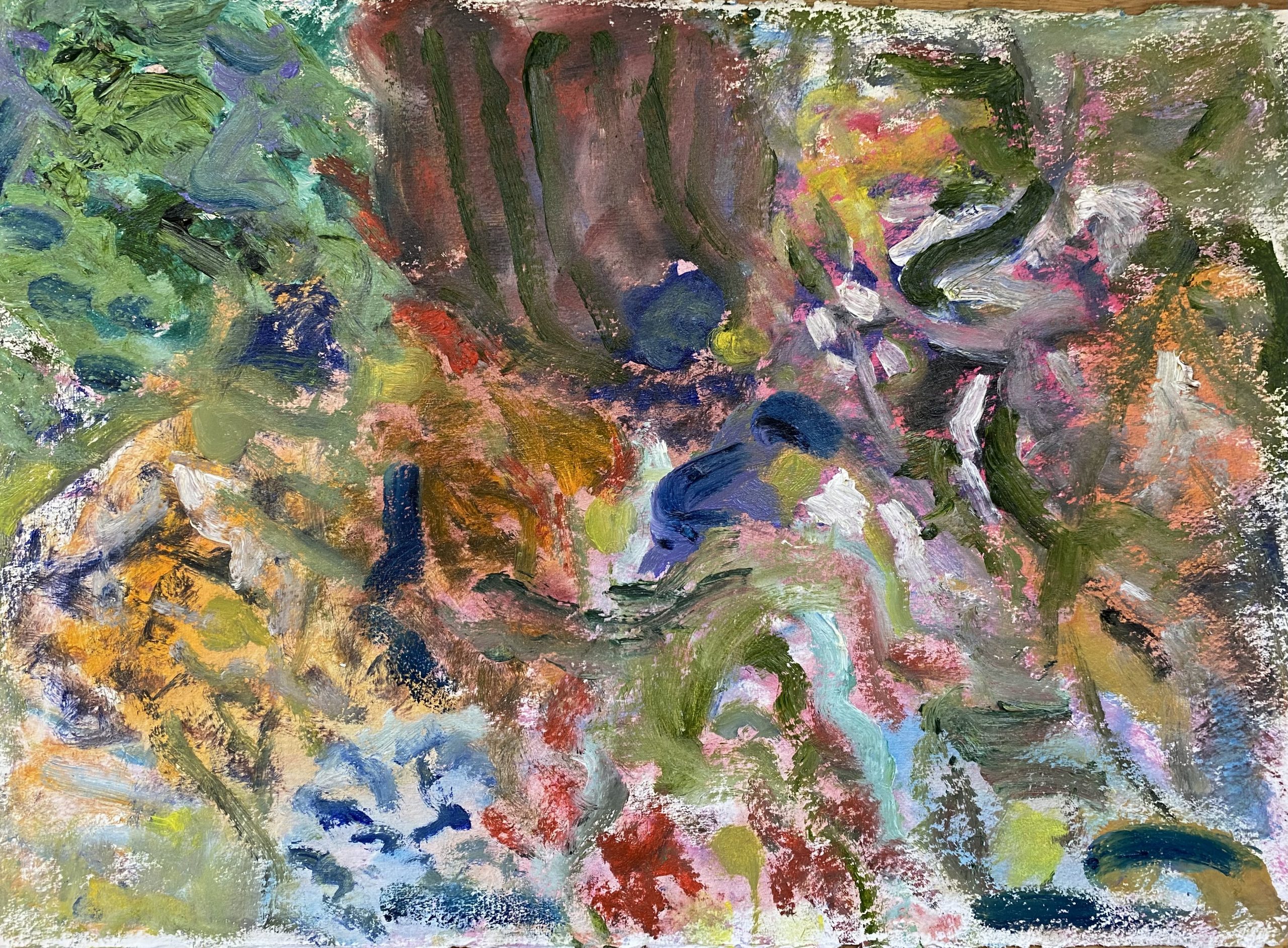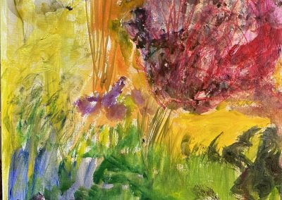 Abstract garden painting, mixed media on paper, 60 x 84 cms. Nov ’24.
