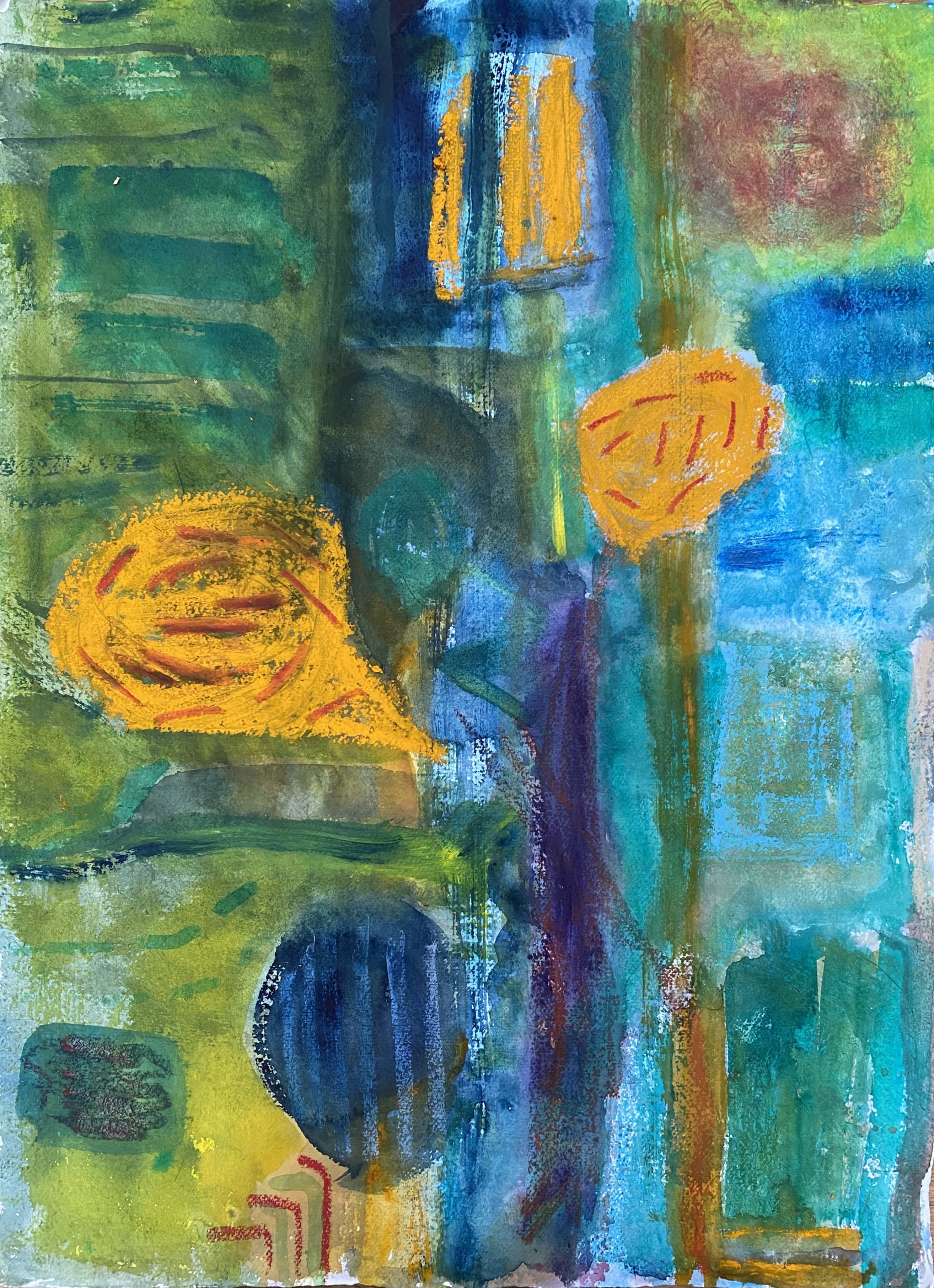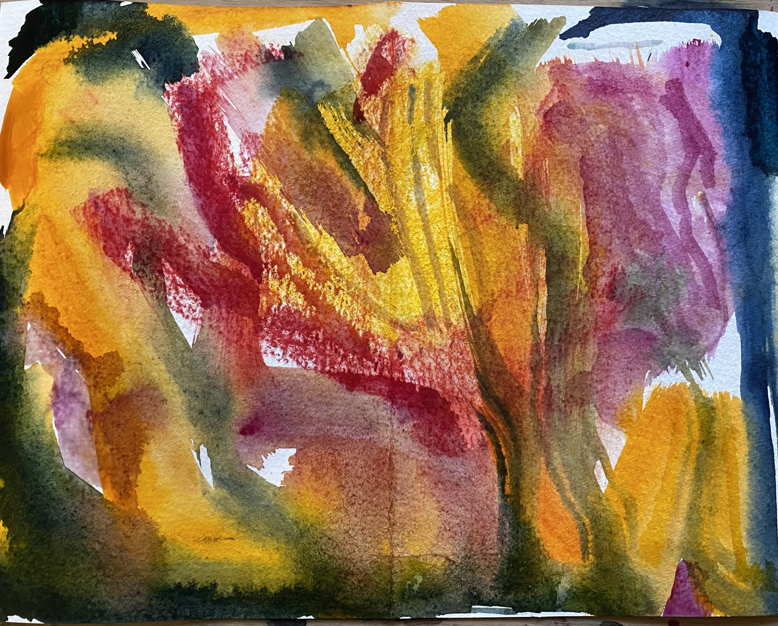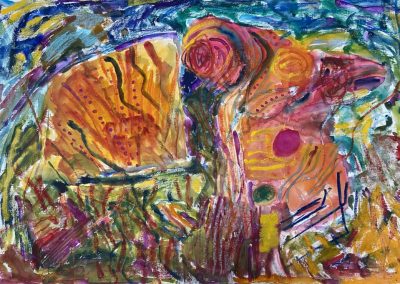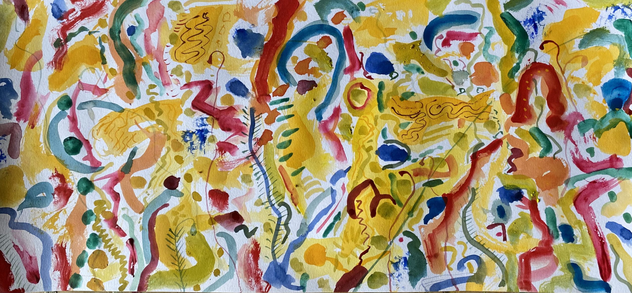 Abstract, watercolour and gouache, 25 x 36 cms. May ’22.