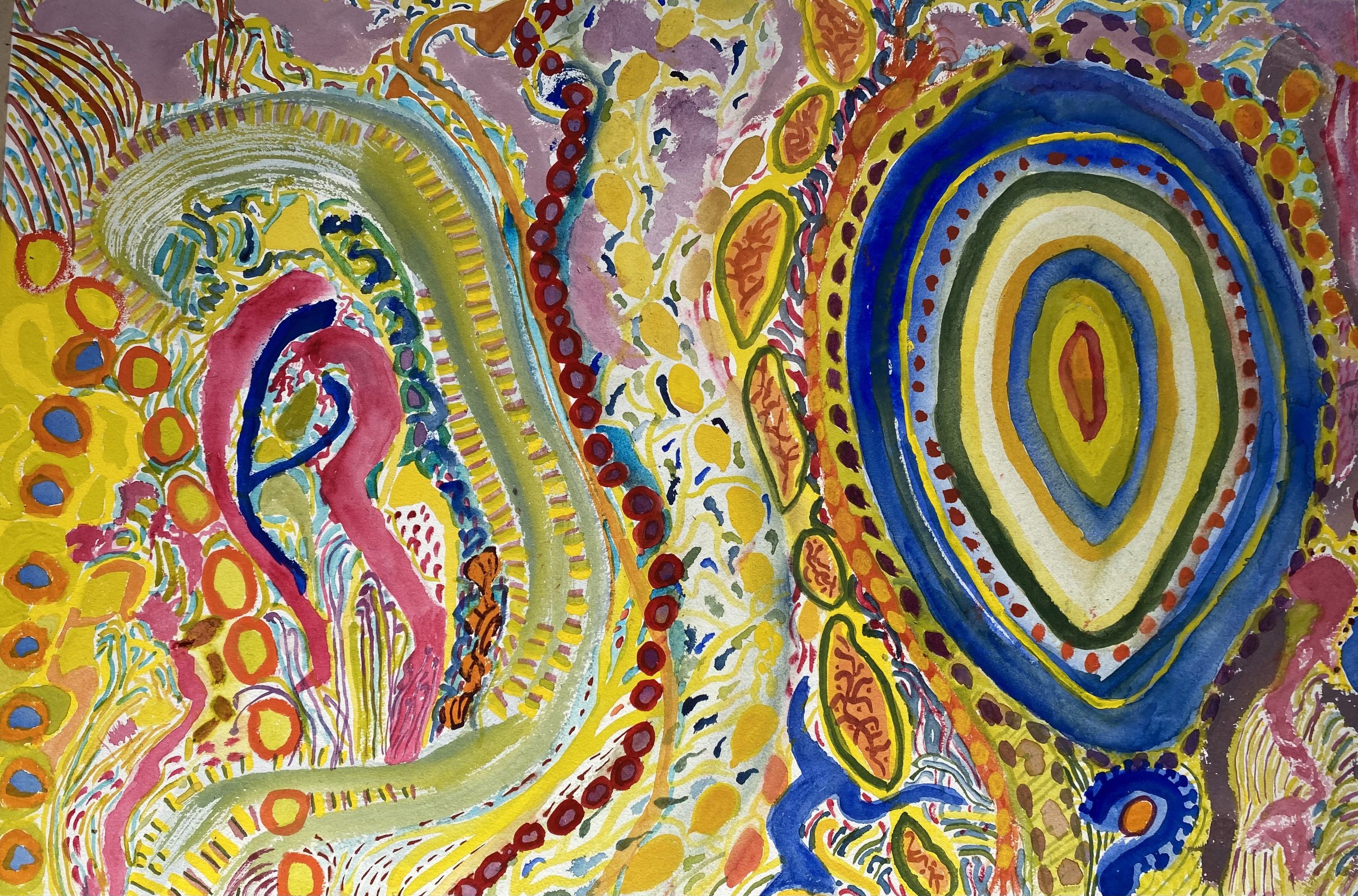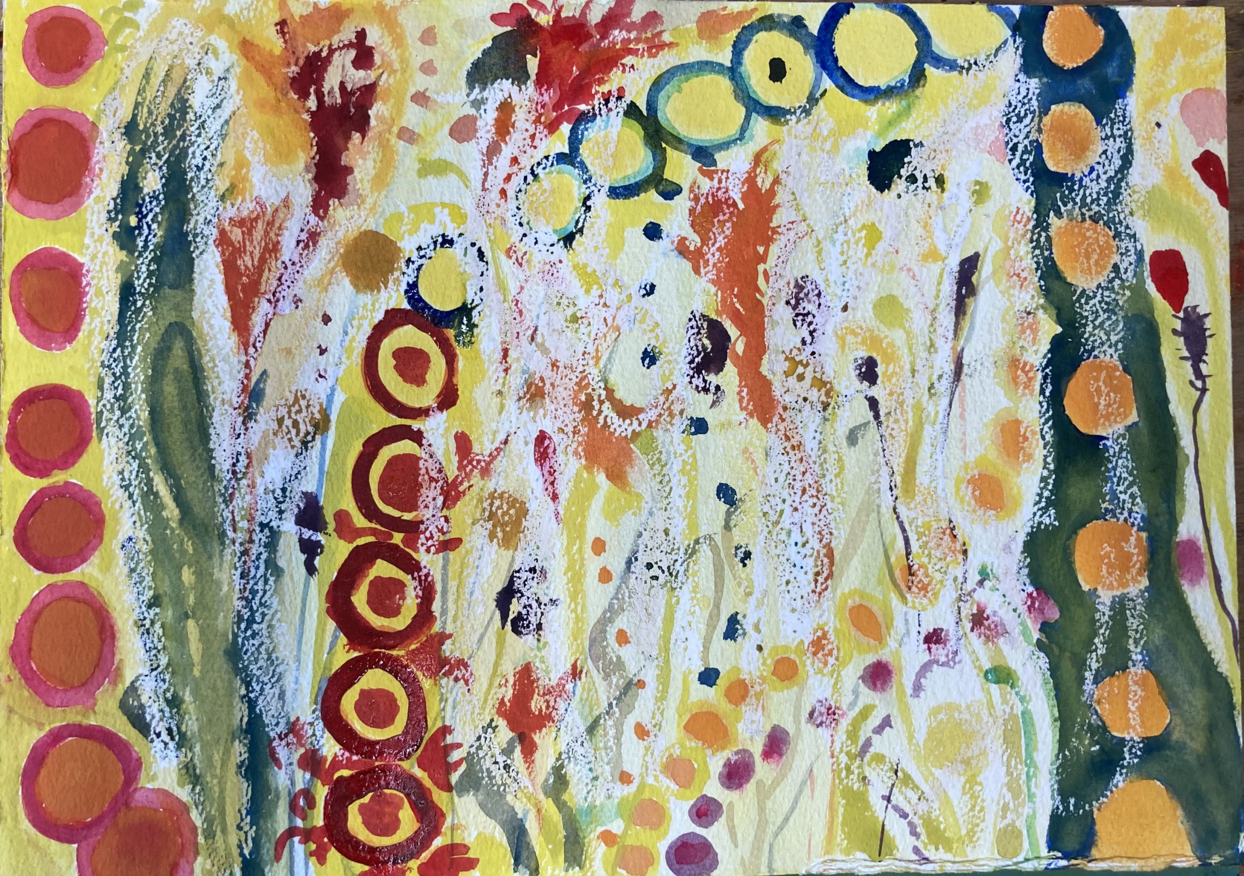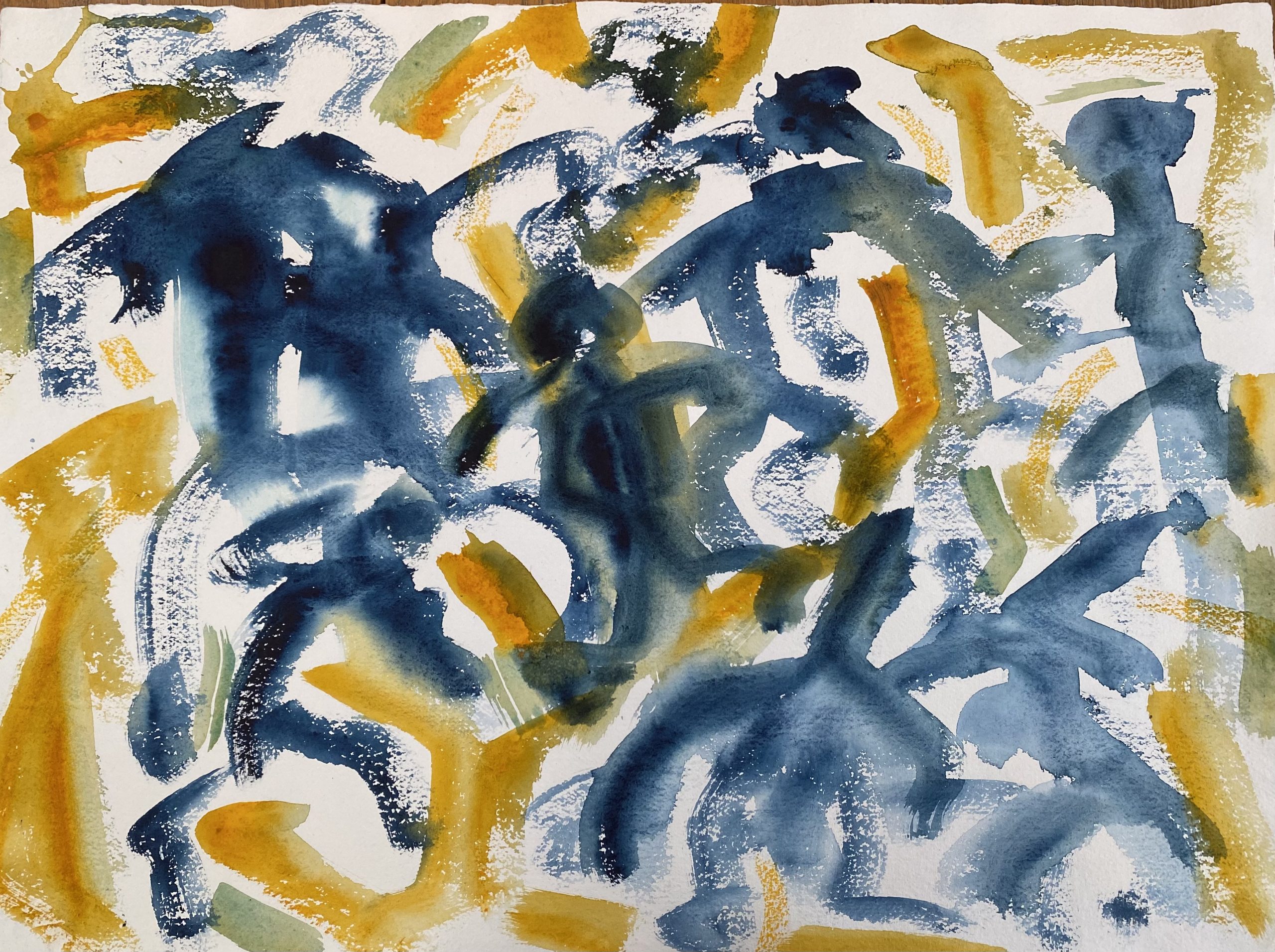 Abstract, watercolour and gouache, 25 x 36 cms. May ’22.