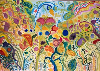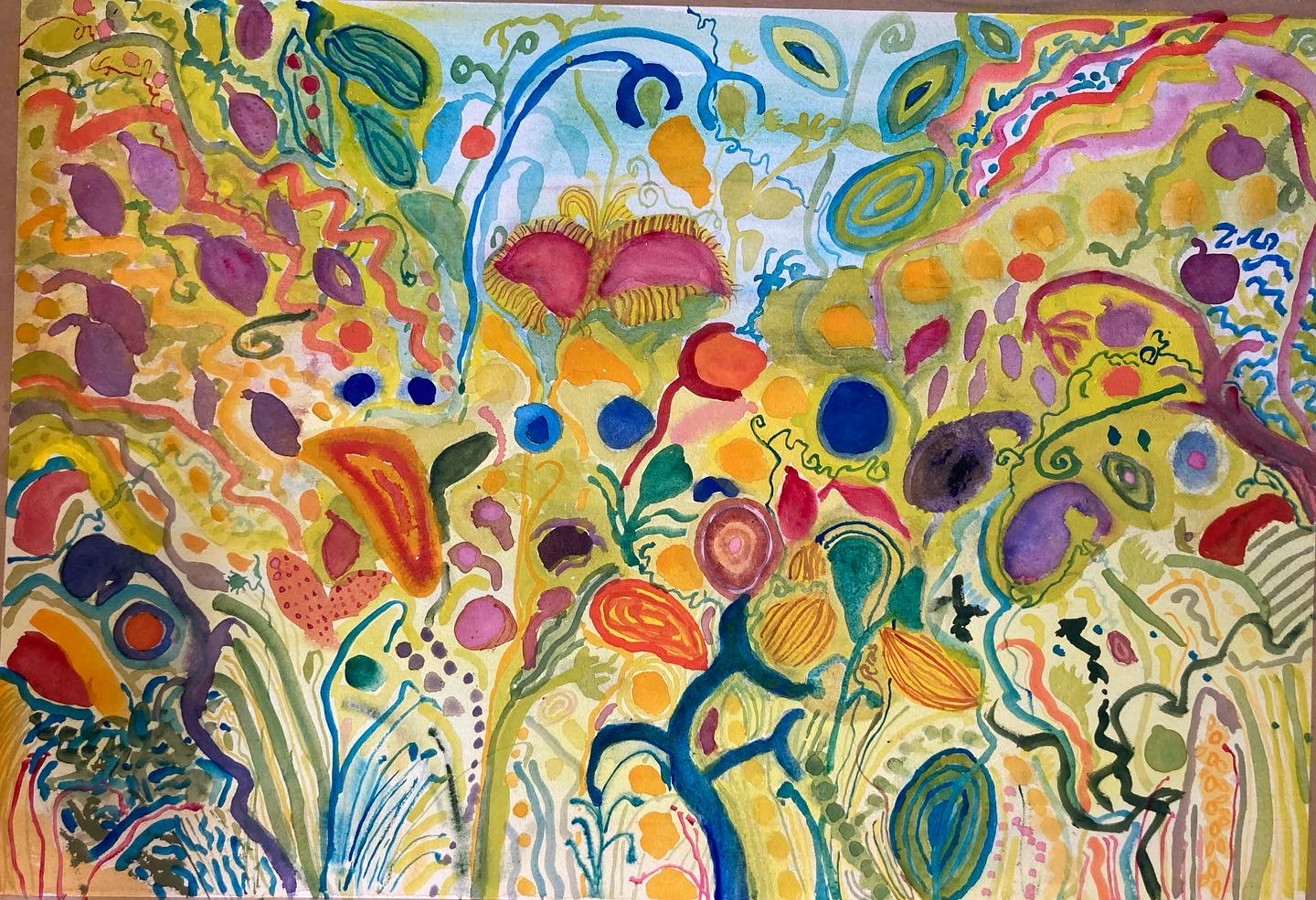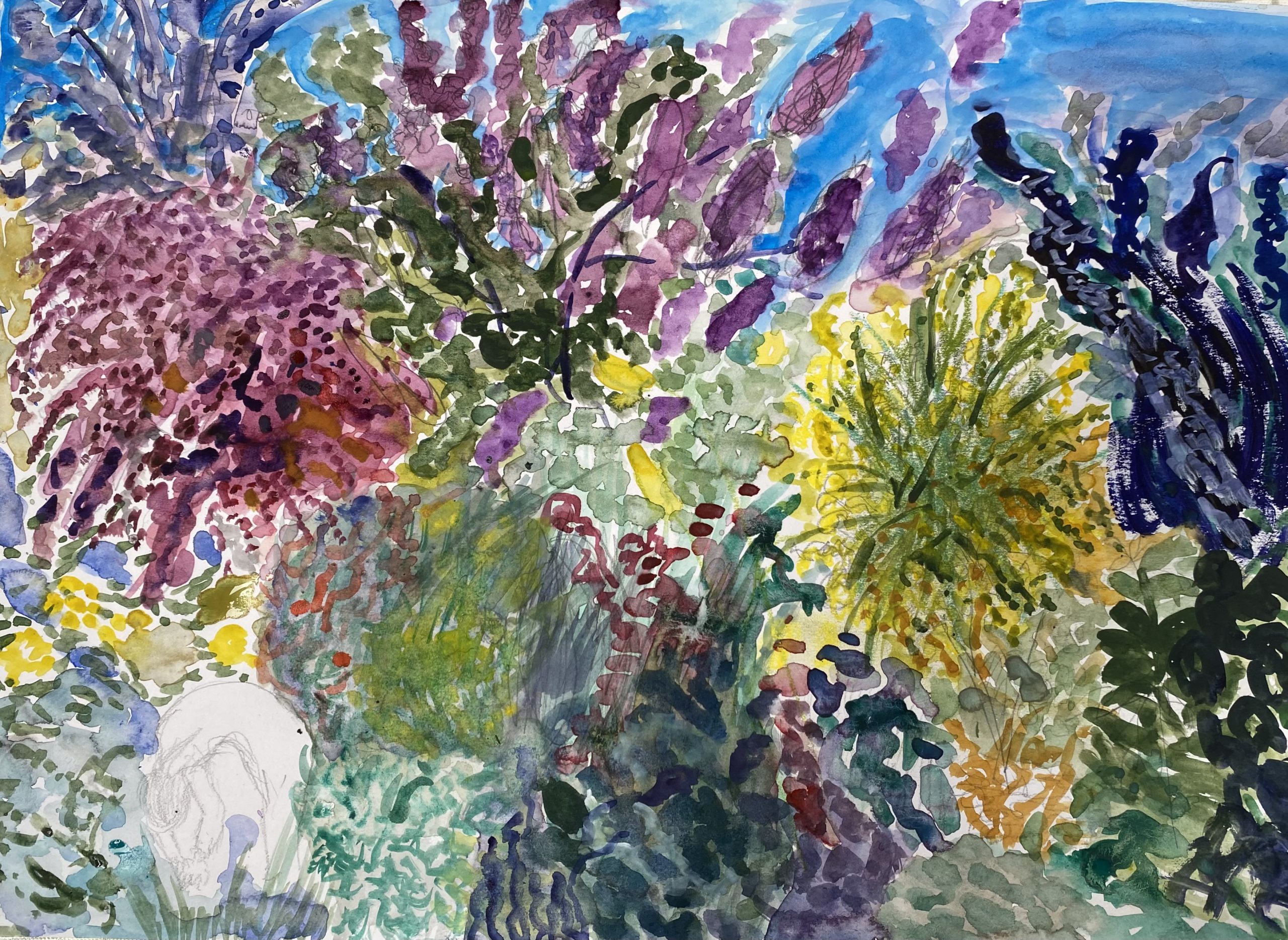 Bonkers Garden, watercolour and gouache, commission Aug ’22.