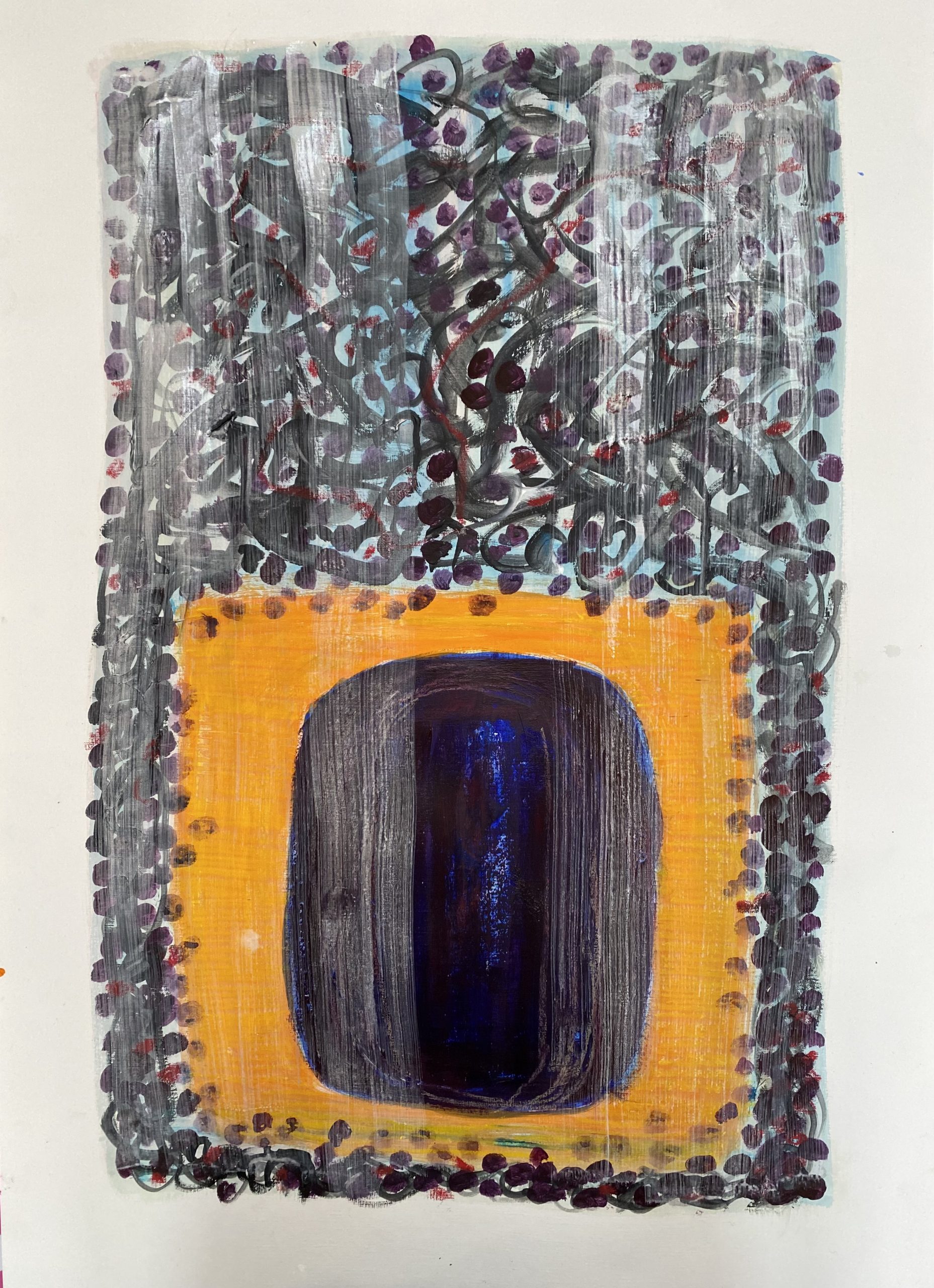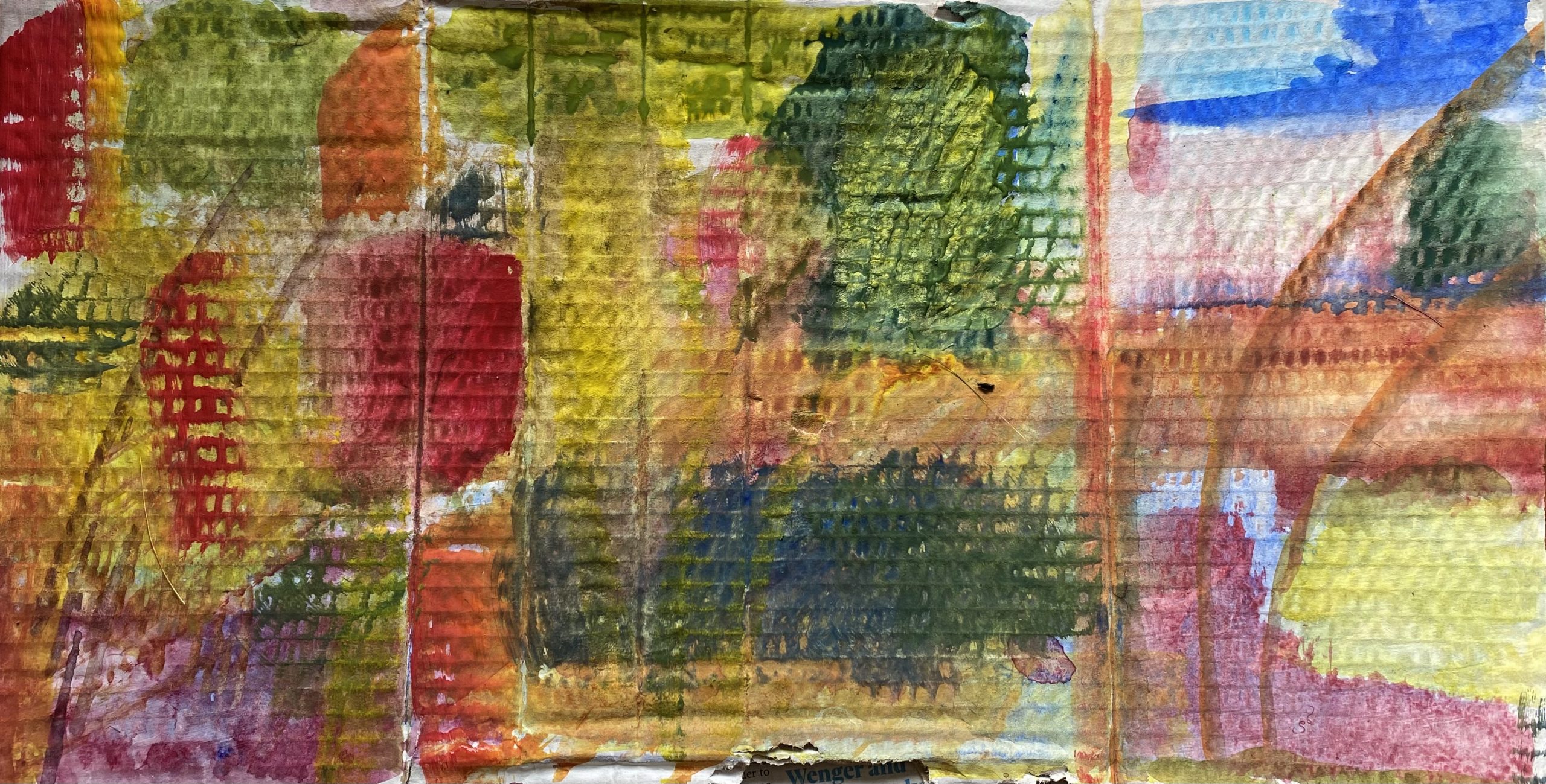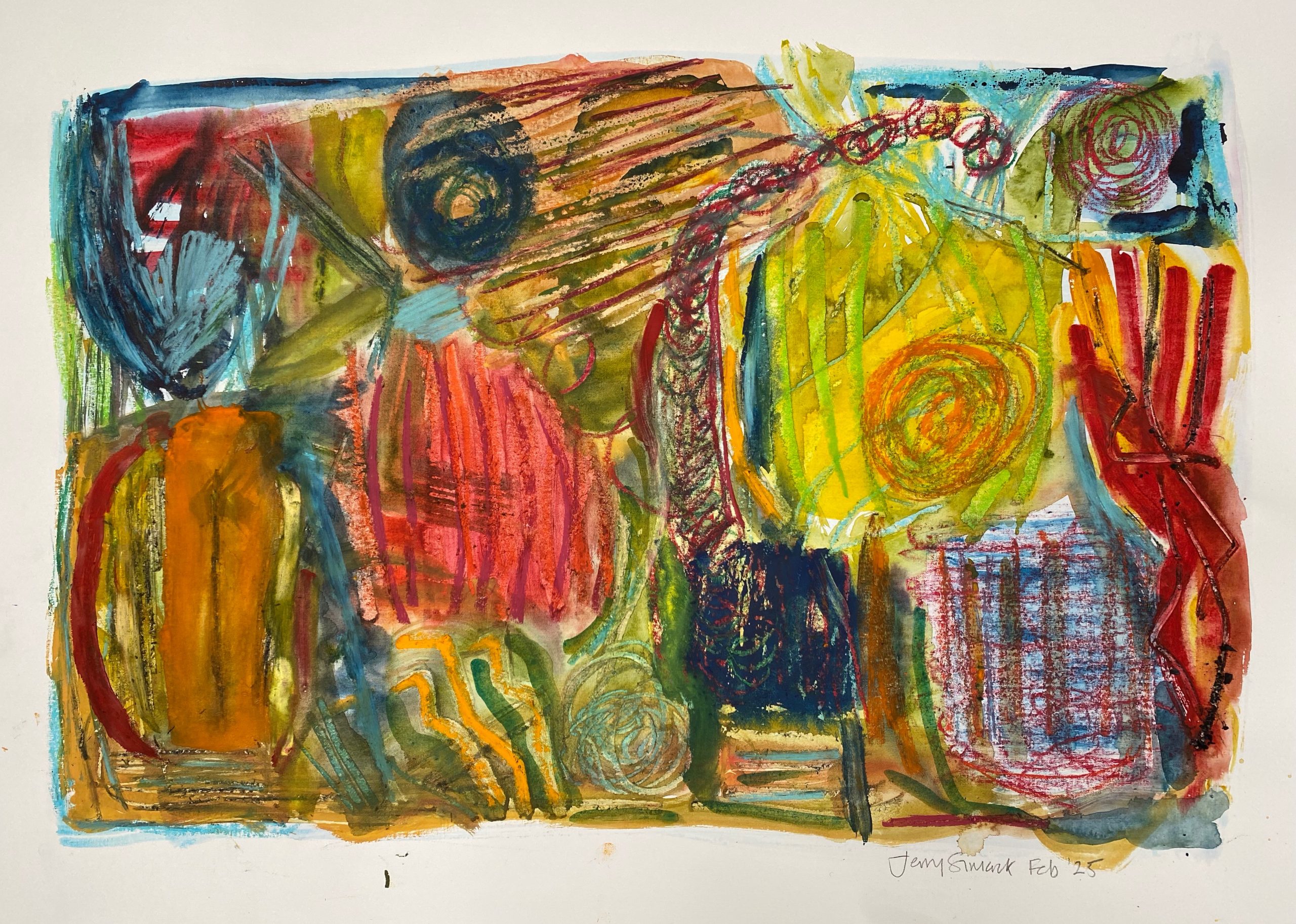 Abstract, watercolor and gouache on cardboard. Feb ’24.