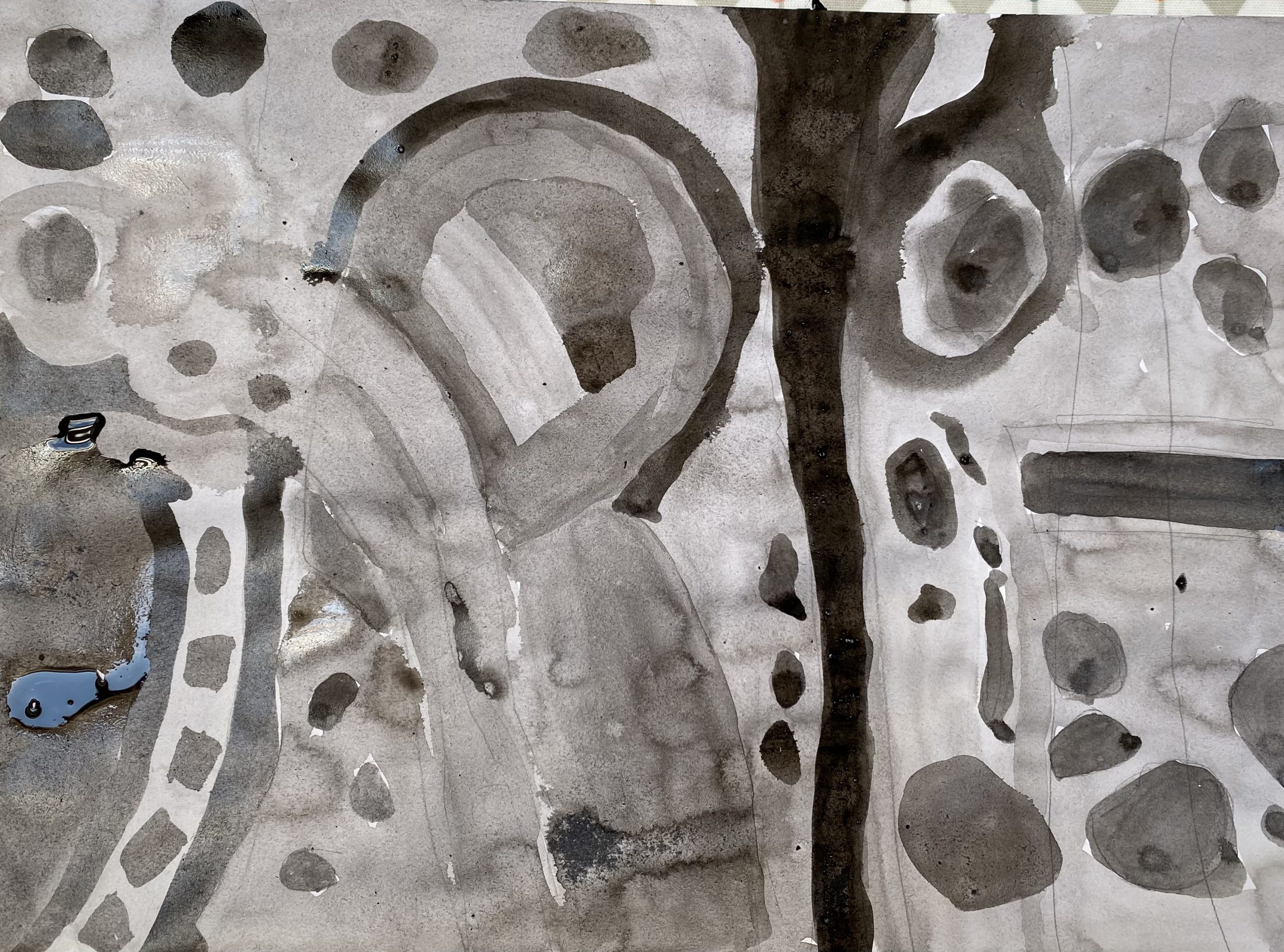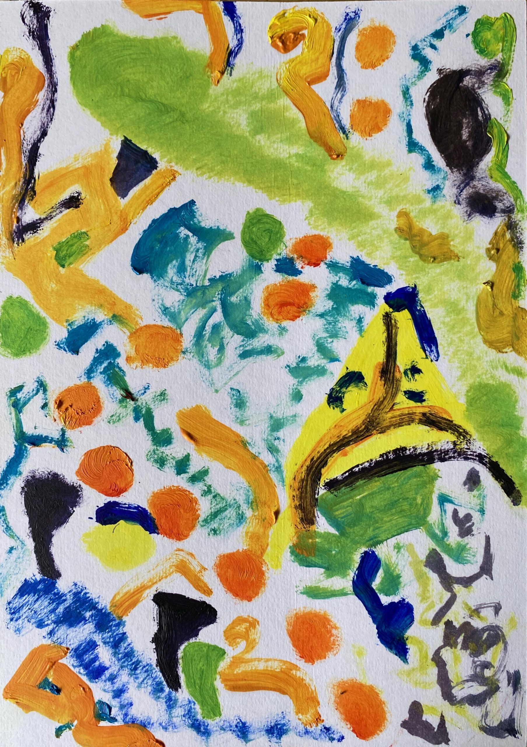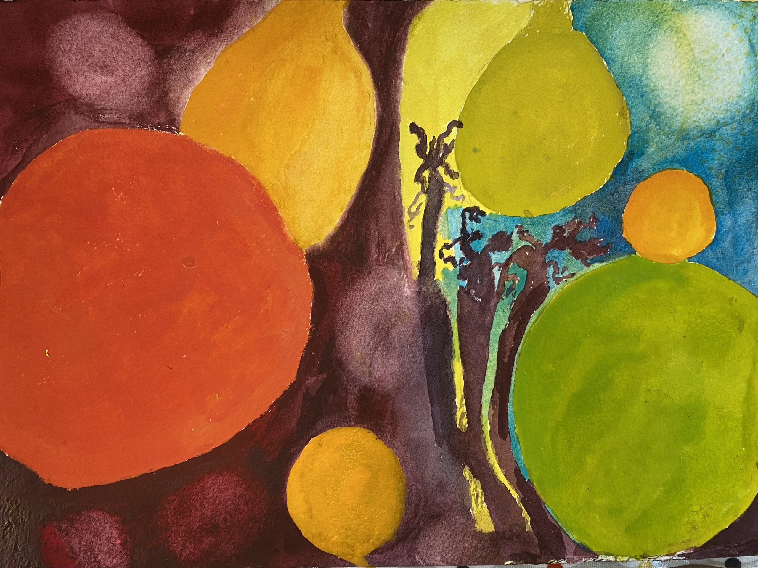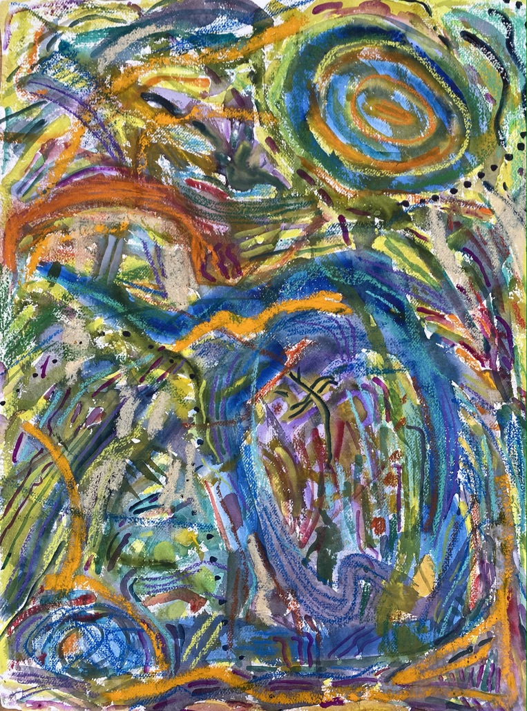 Abstract, watercolor and gouache on cardboard. Feb ’24.