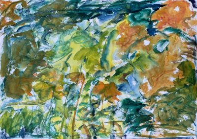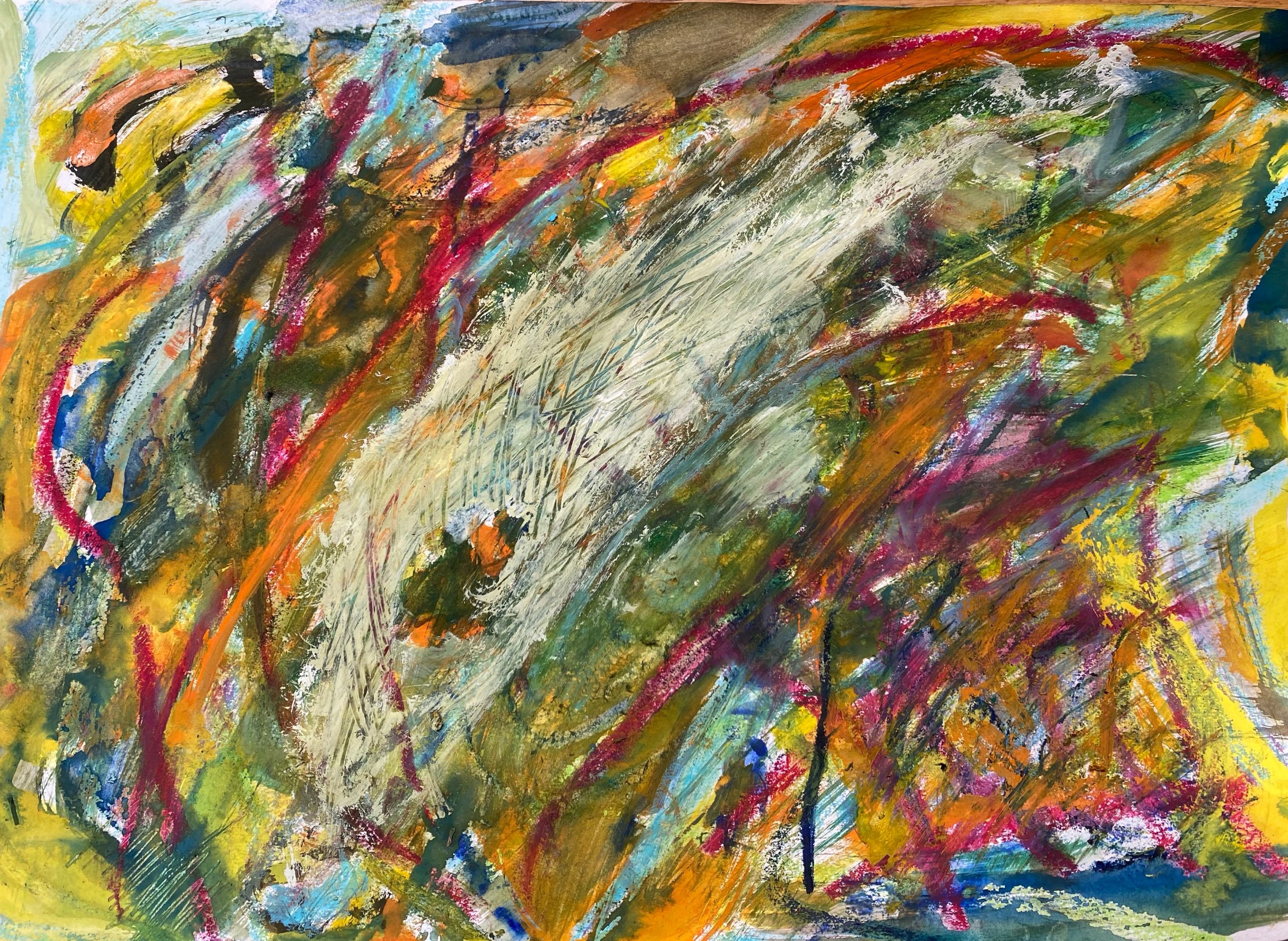 Autumn colours, abstract in watercolour and gouache, 60 x84 cms. Oct ’24.