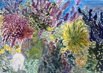 Lilacs and Broom, watercolour and gouache, 57 x 80 cms. May ’23.