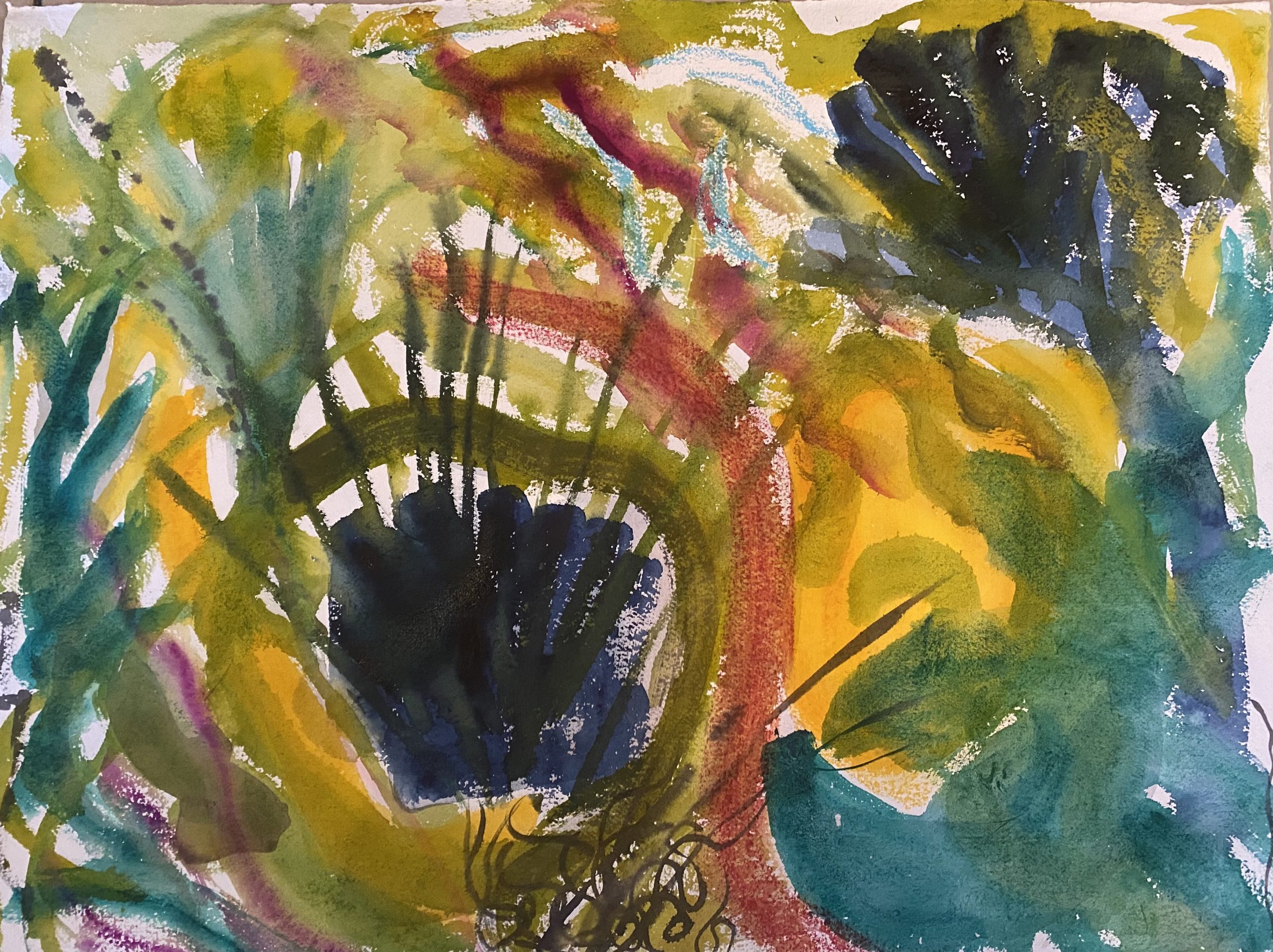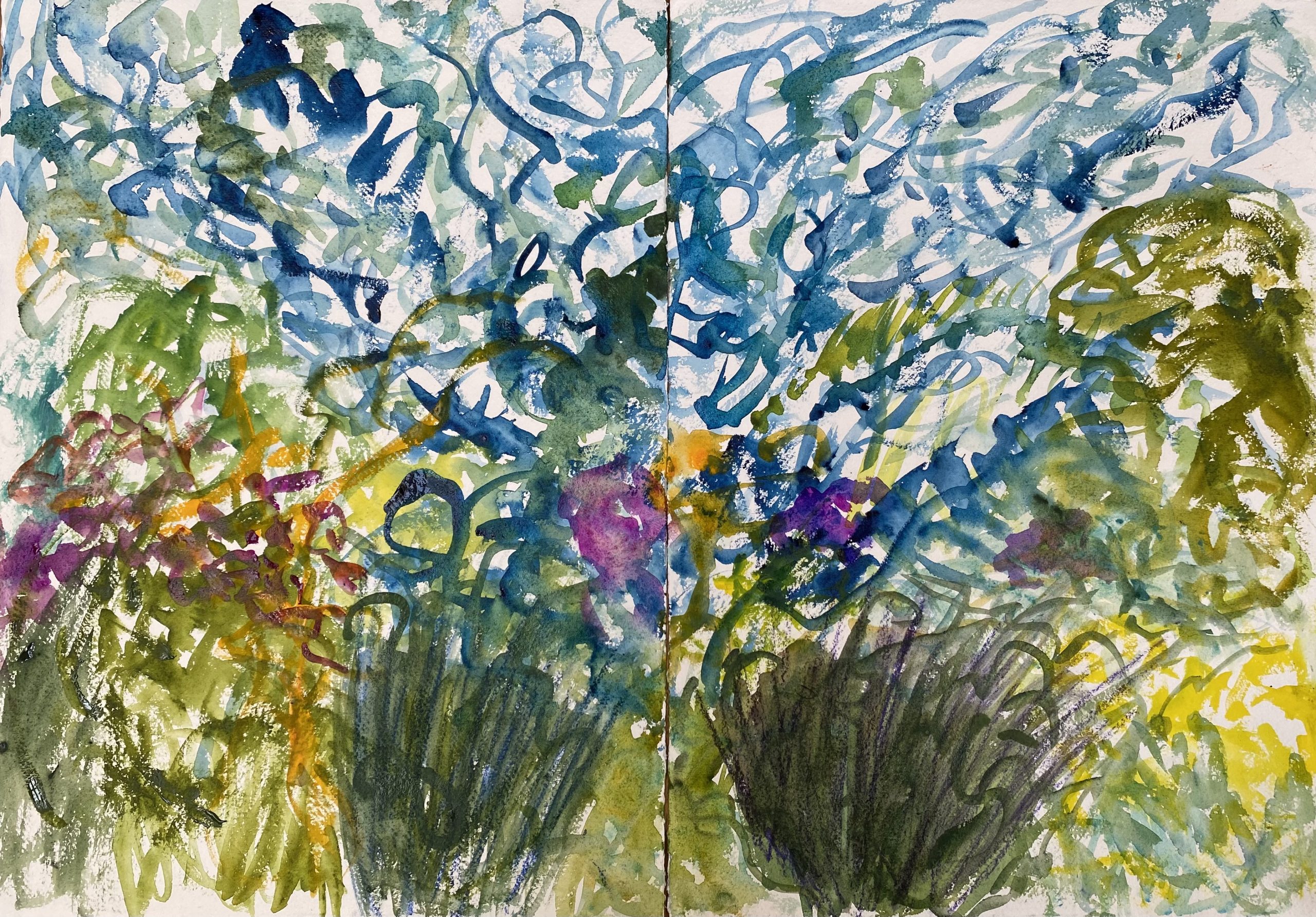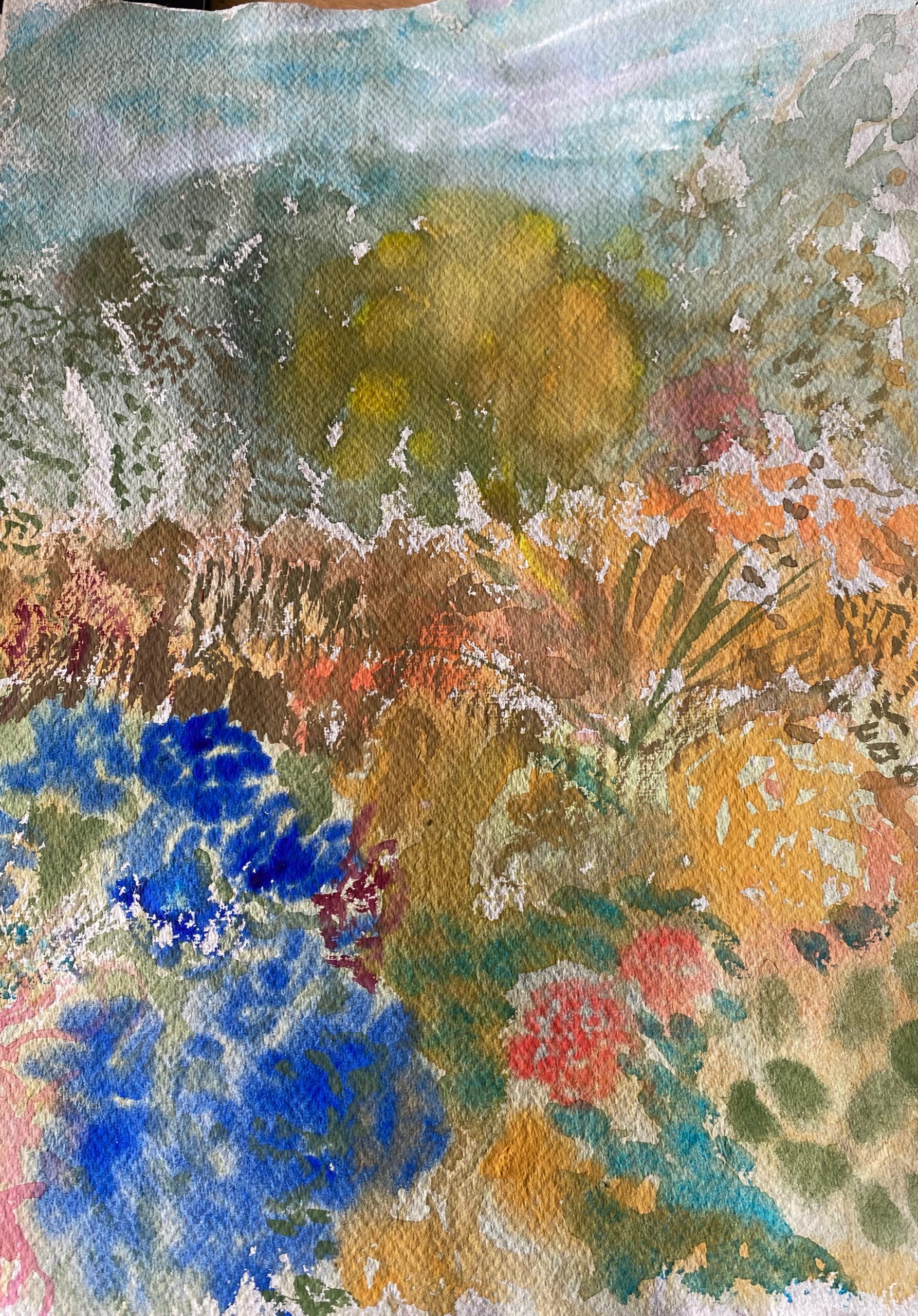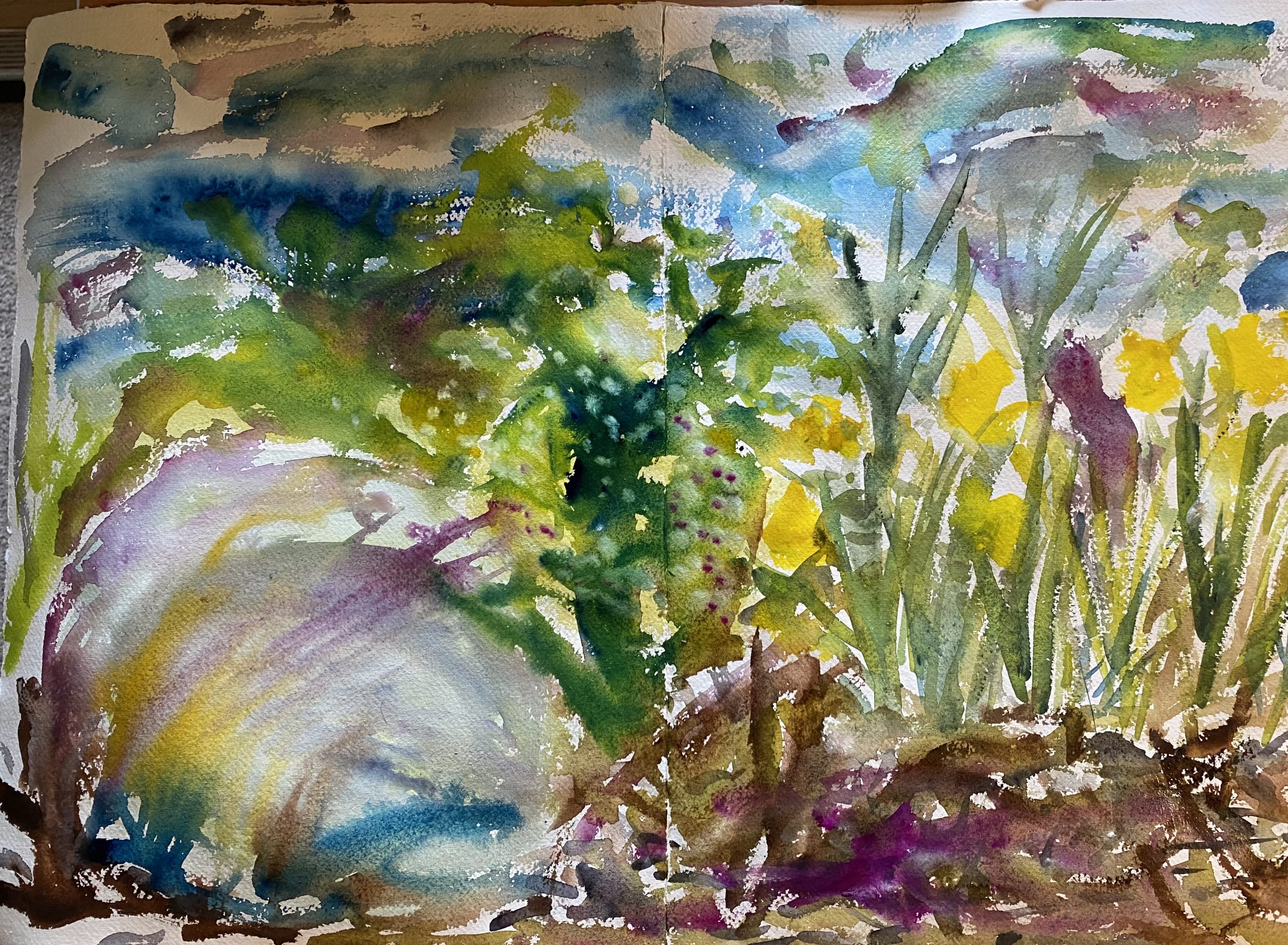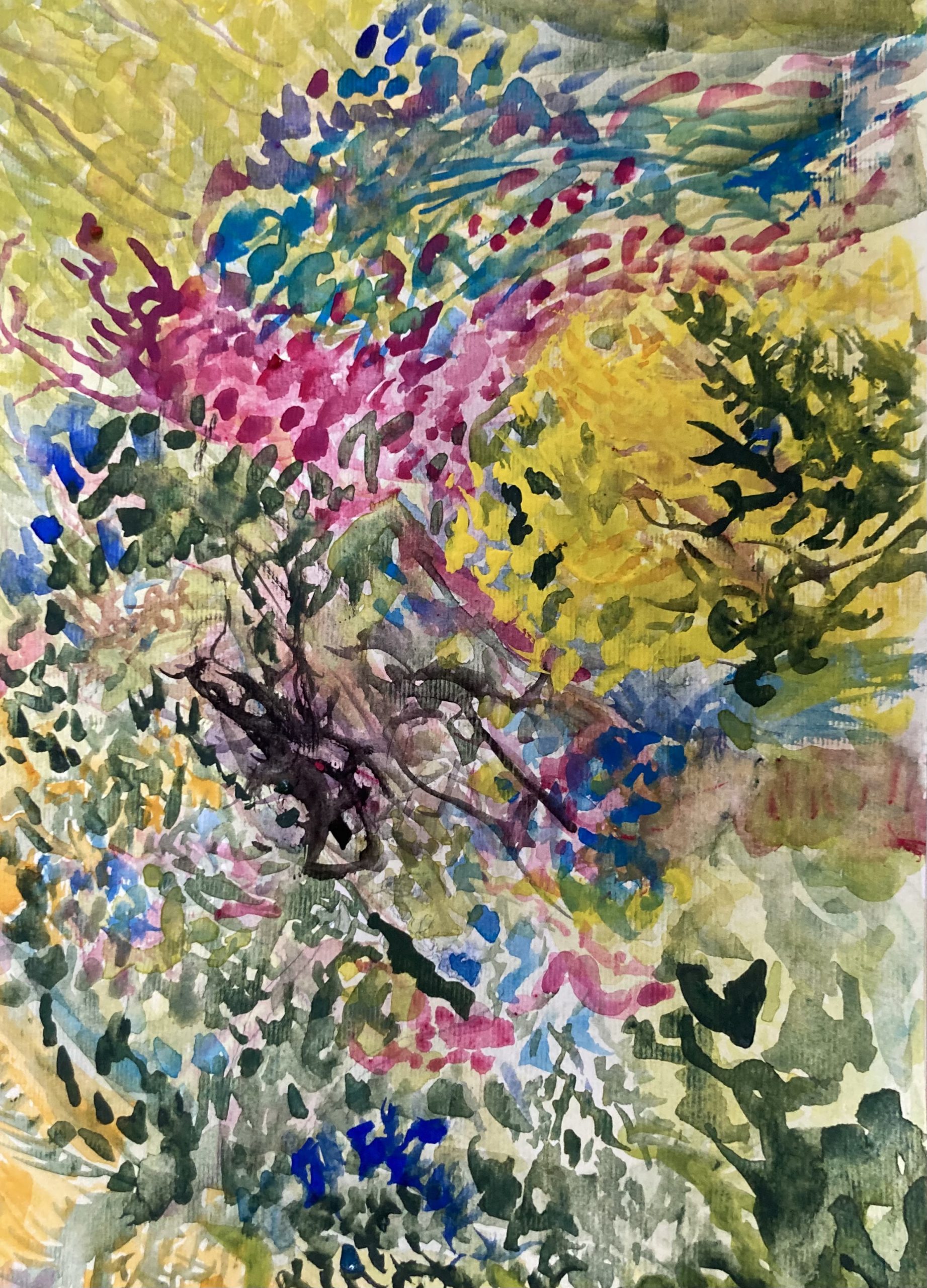 Abstract garden sketch in watercolour and gouache, March ’22.