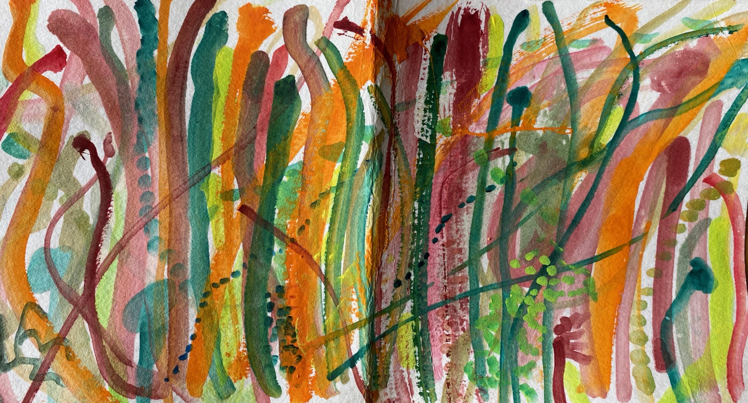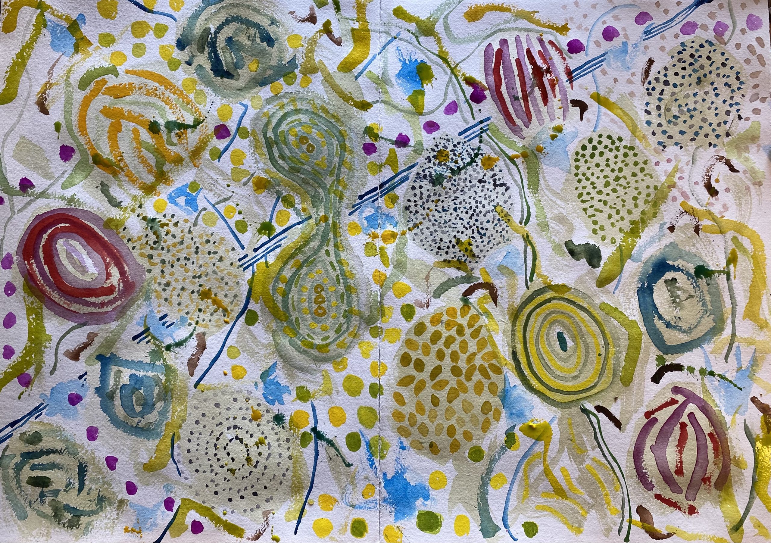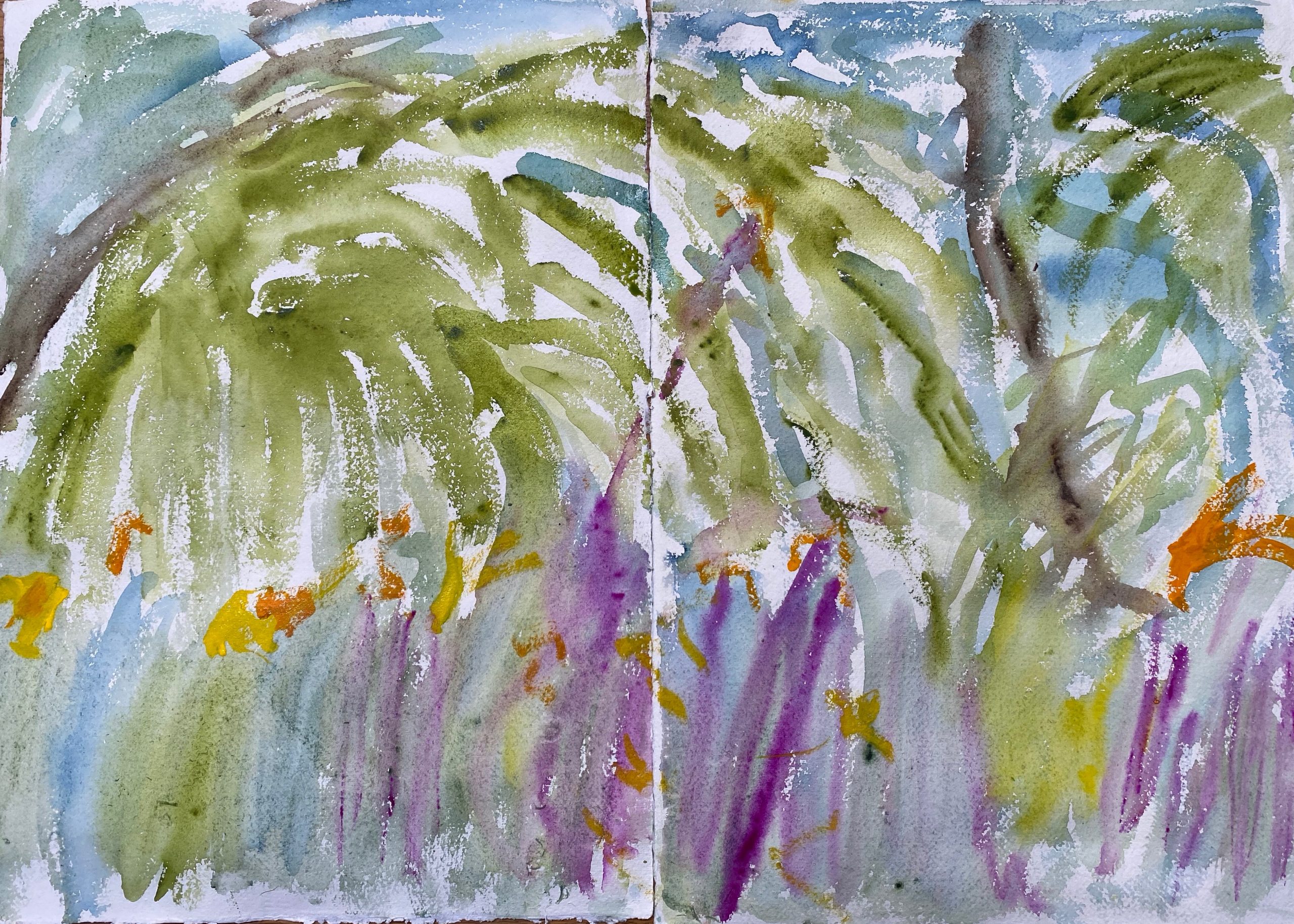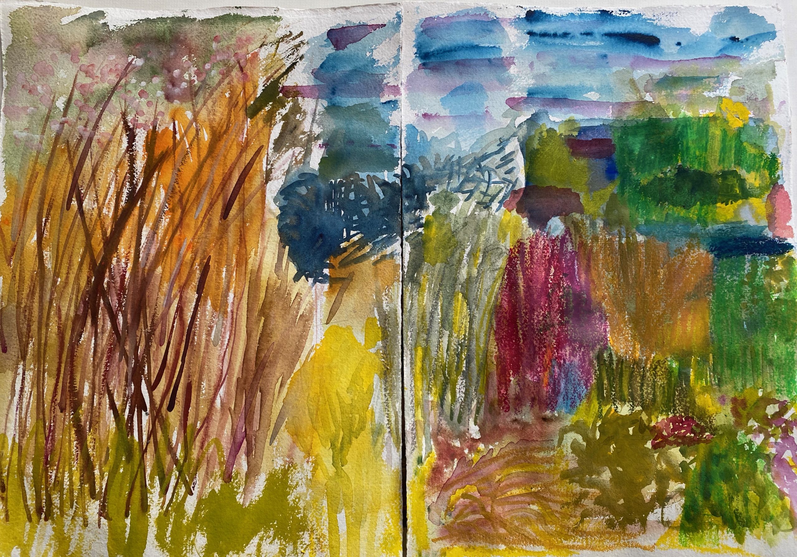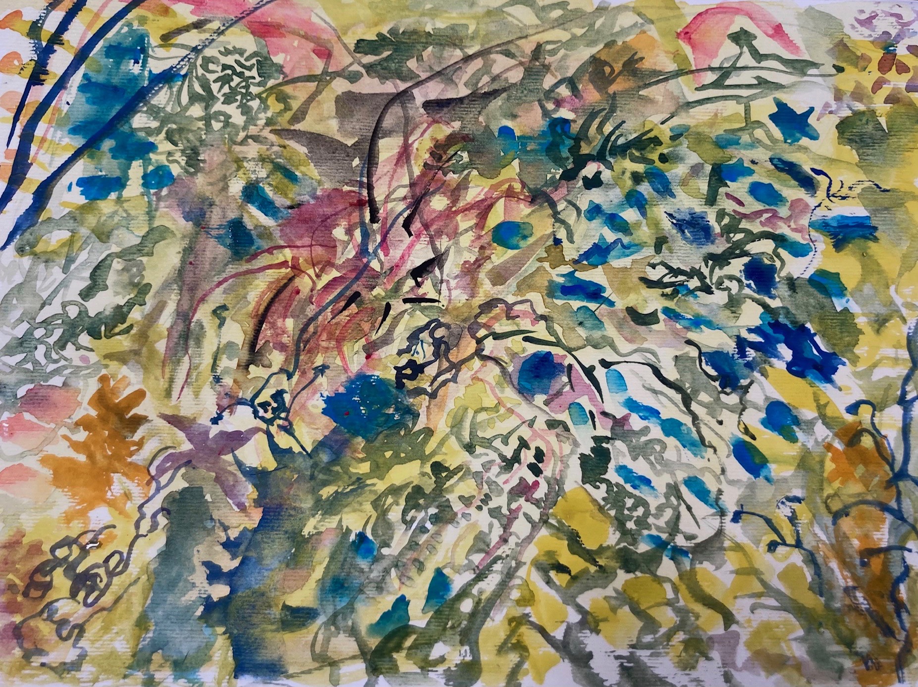 Abstract garden sketch in watercolour and gouache, March ’22.