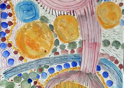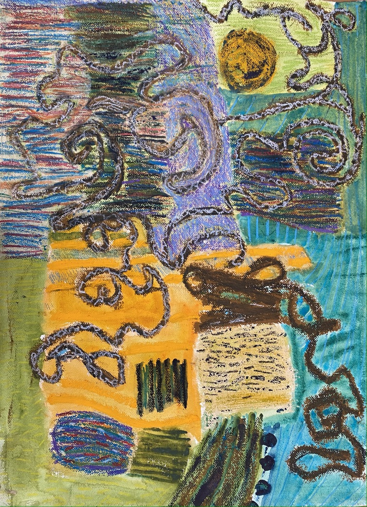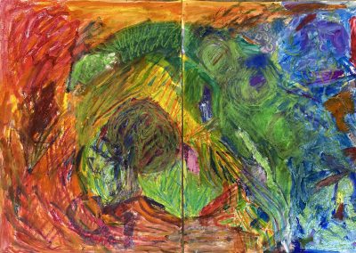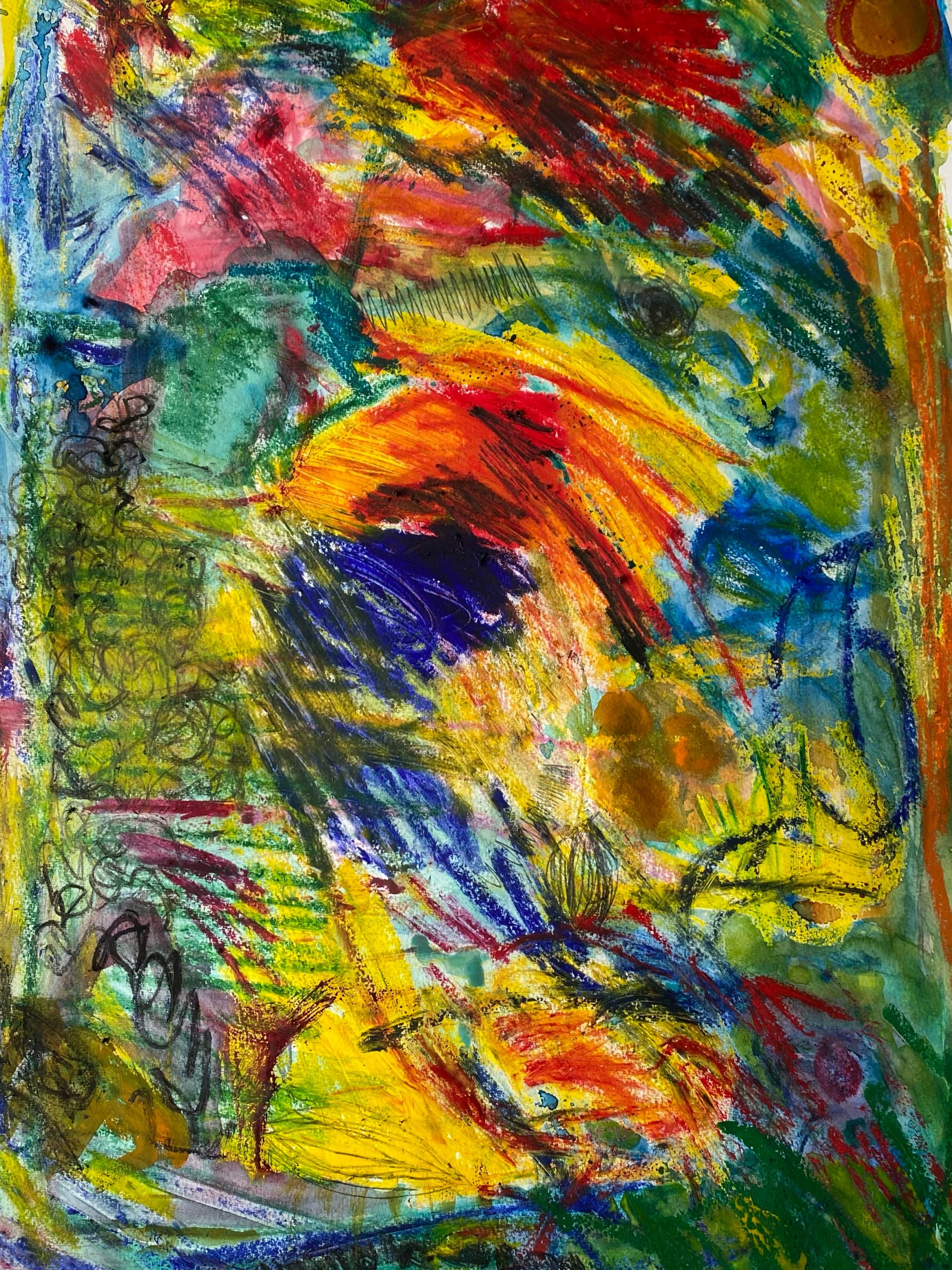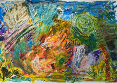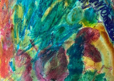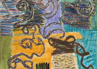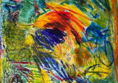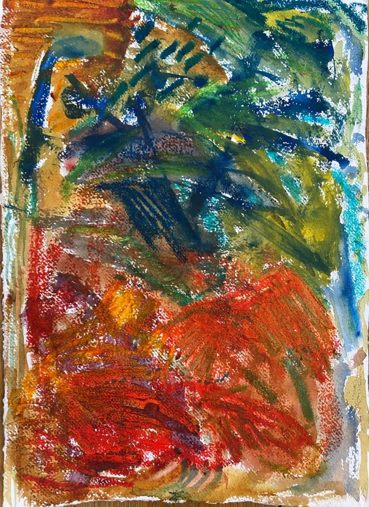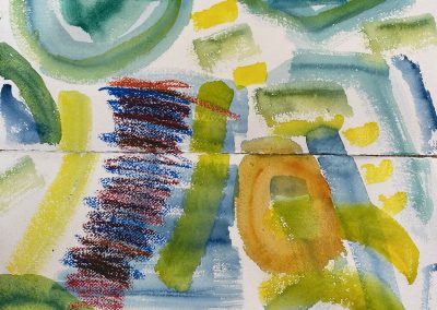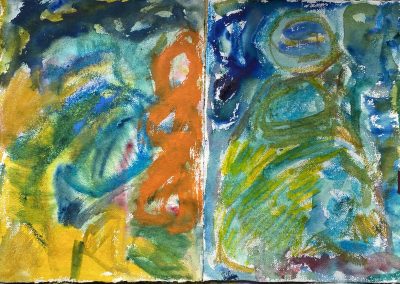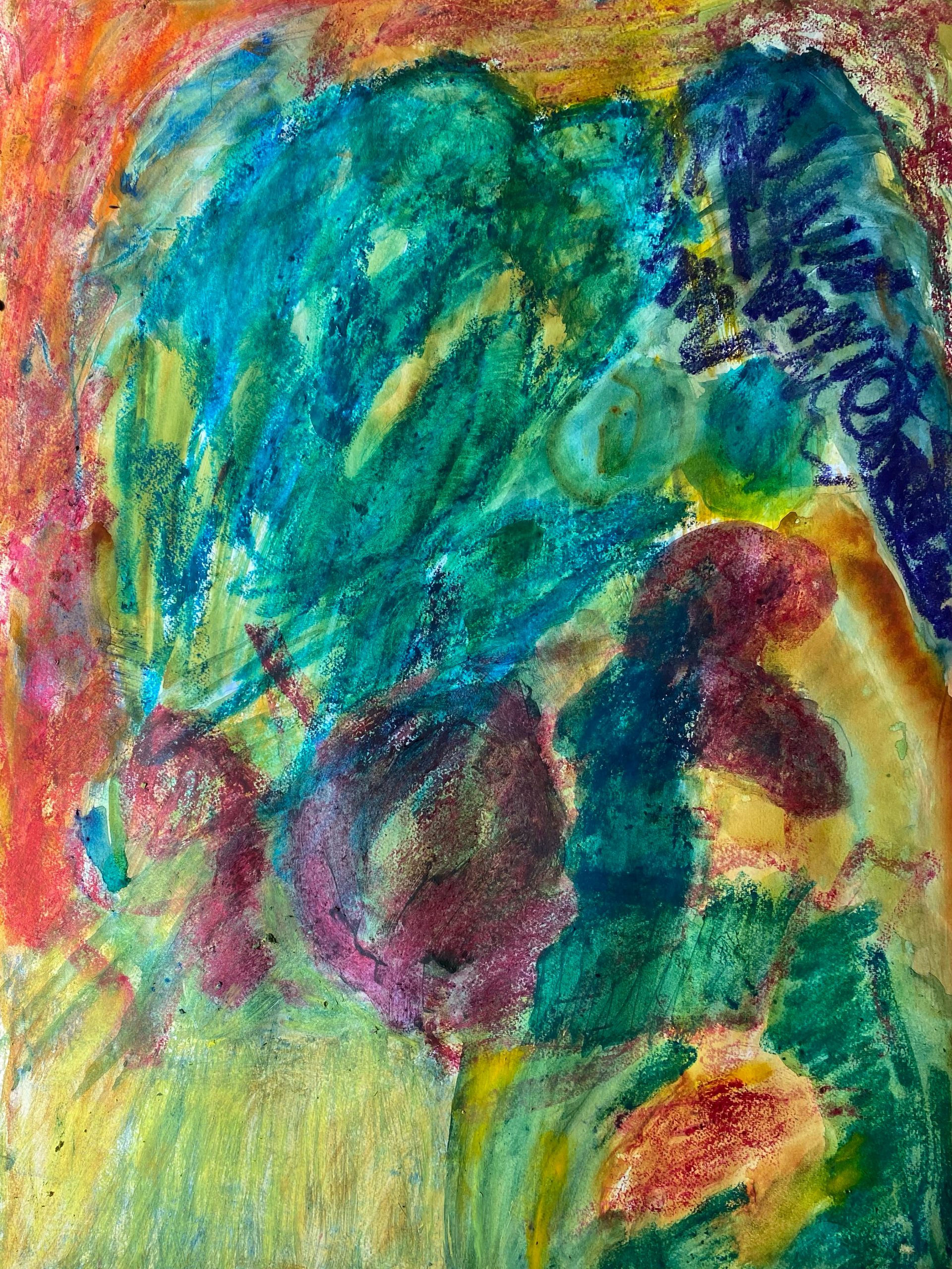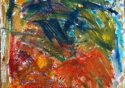 Abstract painting in watercolour and oil pastel on Khadi paper, 58 x77 cms. Dec ’24