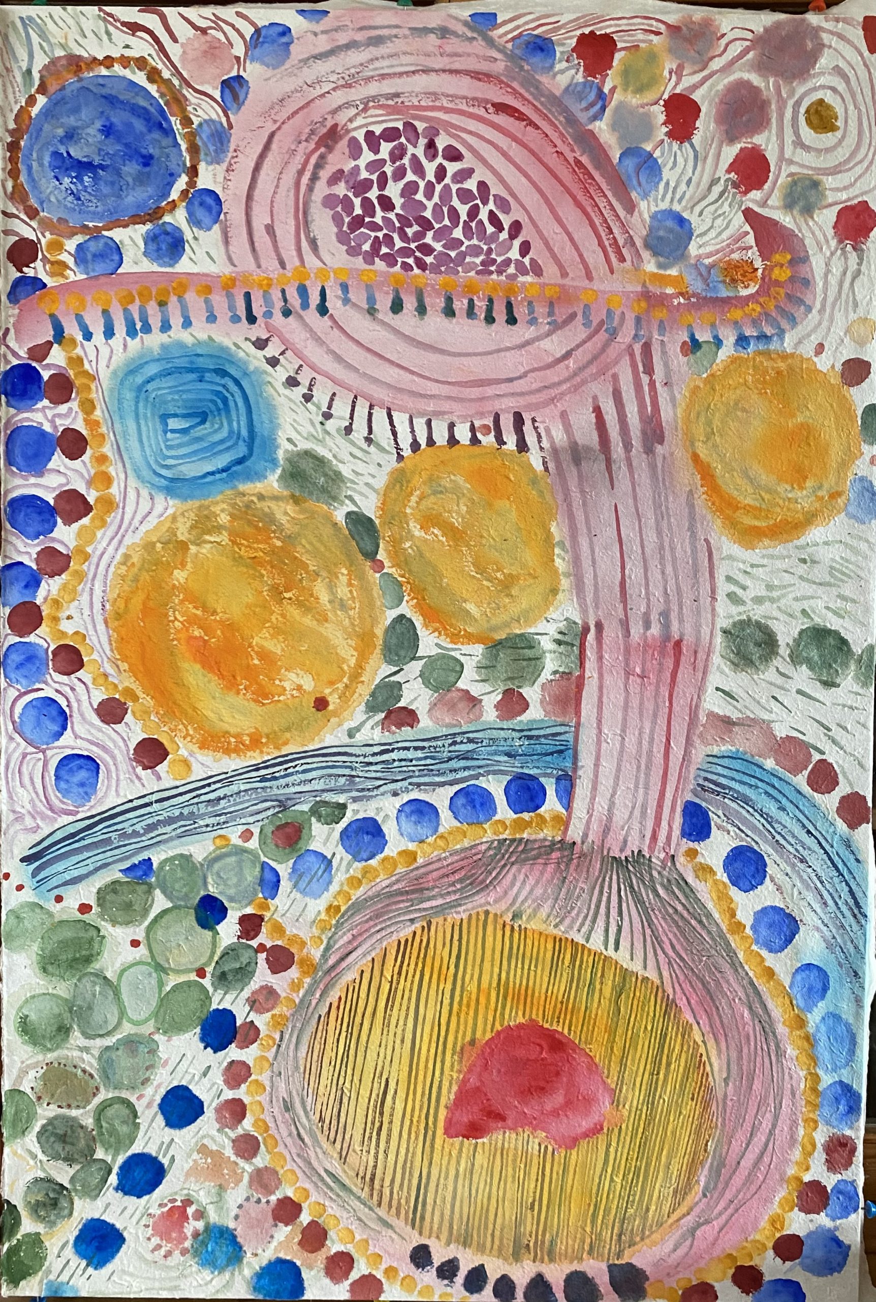 Abstract painting on paper, mixed media, 60 x 42 cms. Oct ’24.