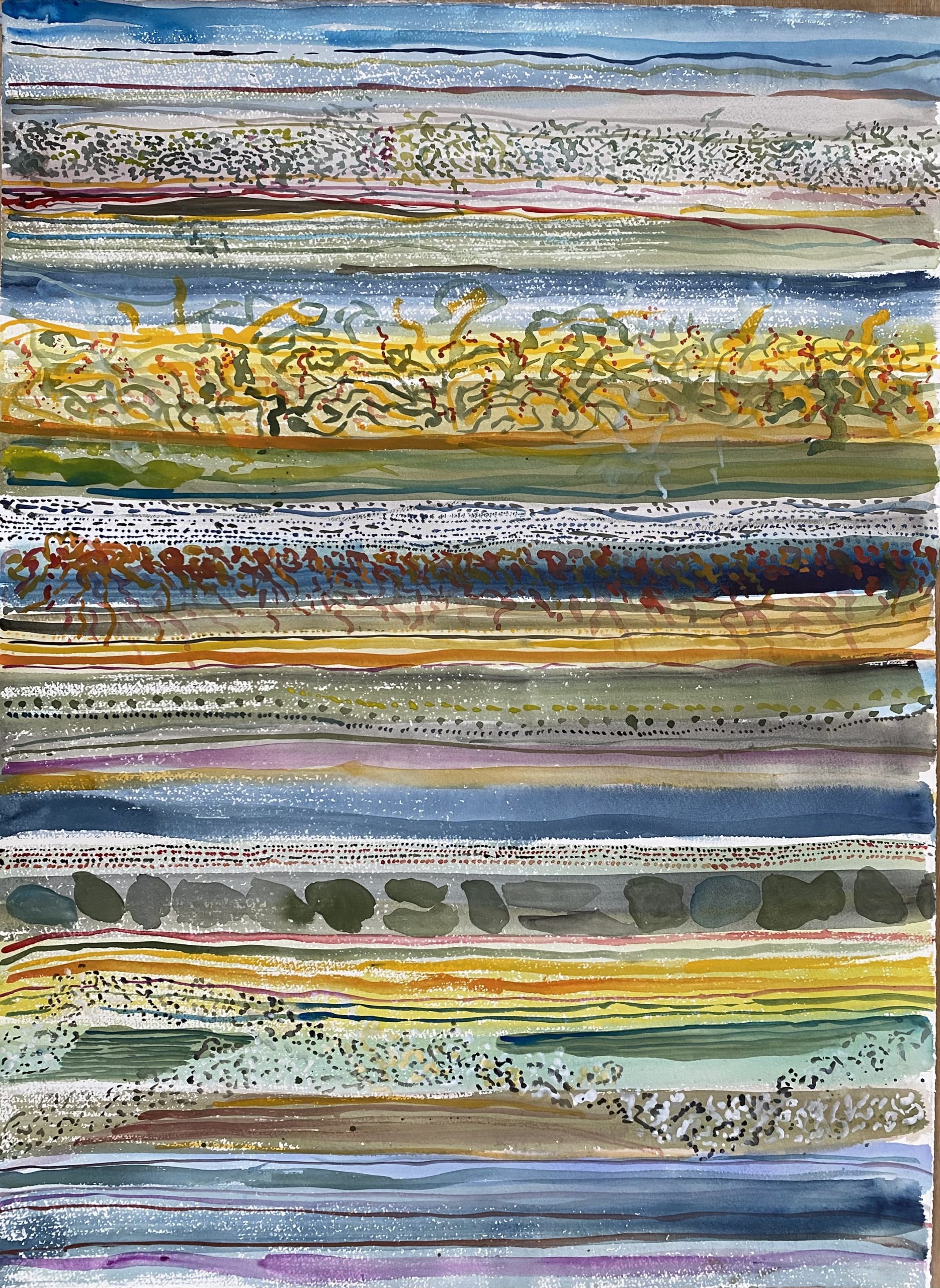 Strata, watercolour and gouache on paper, 77x 56 cms. December ’23.
