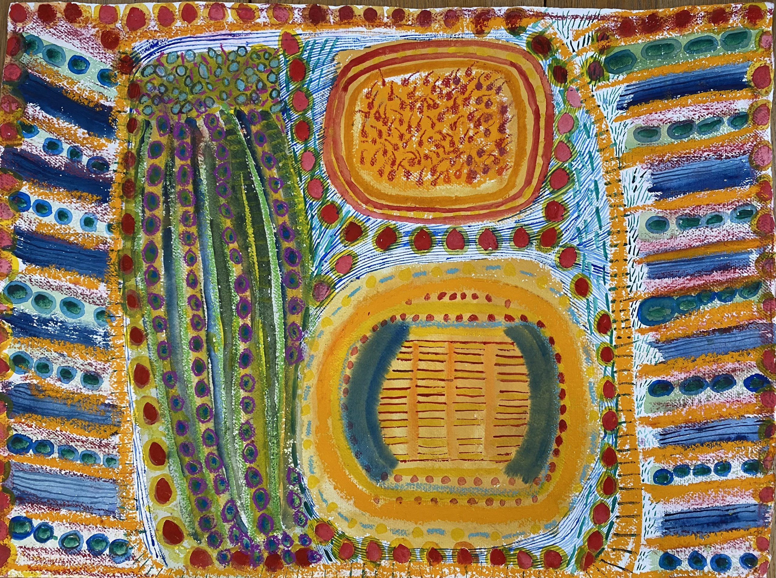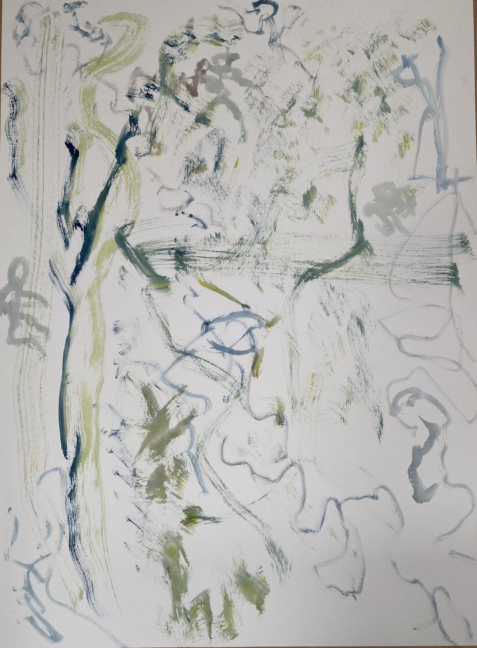 Down by the willow…gouache and watercolour, 76 x 57 cms, April 2022.
