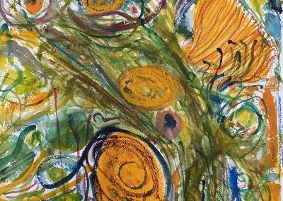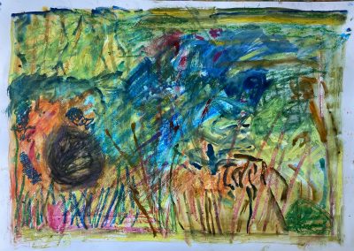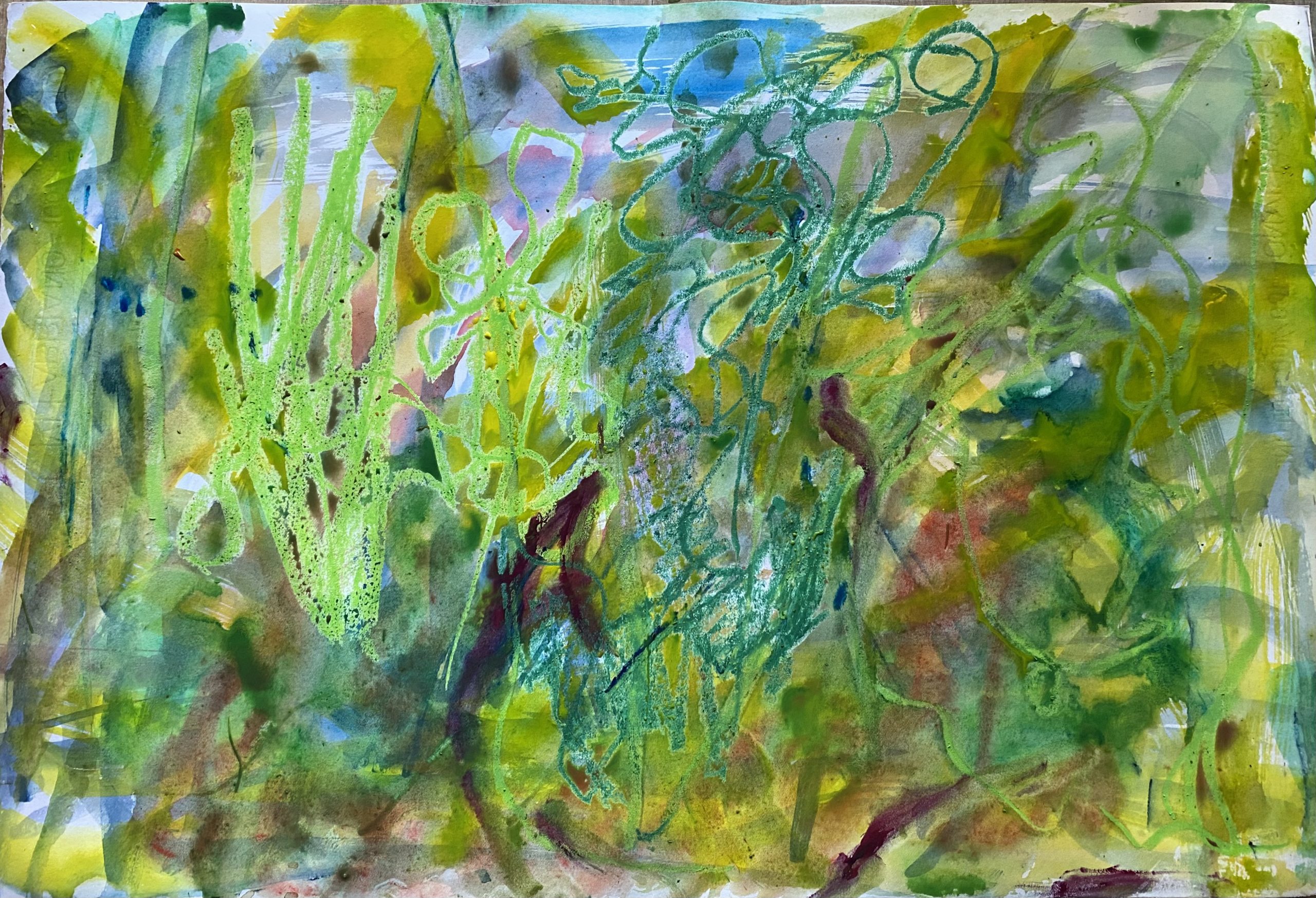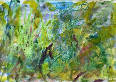 Garden abstract, mixed media on paper, 60×84 cms. 2025