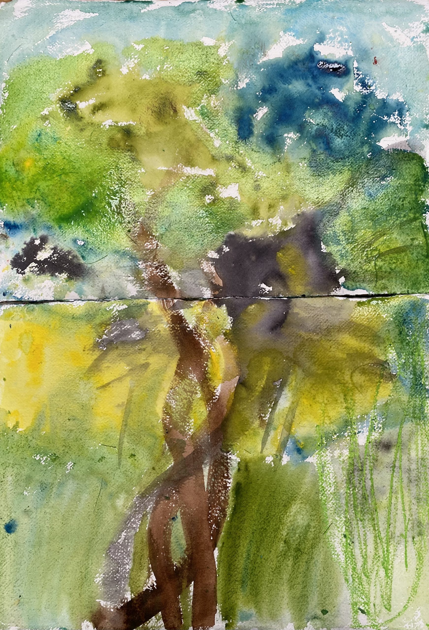 Willow, watercolour and gouache on two pieces of Khadi paper, 43 X 60 cm, ‘Apr 24