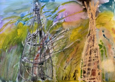 Twisted Willow – abstract painting in watercolour on two sheets of Khadi paper, 60 x 43cms. Aug ’24