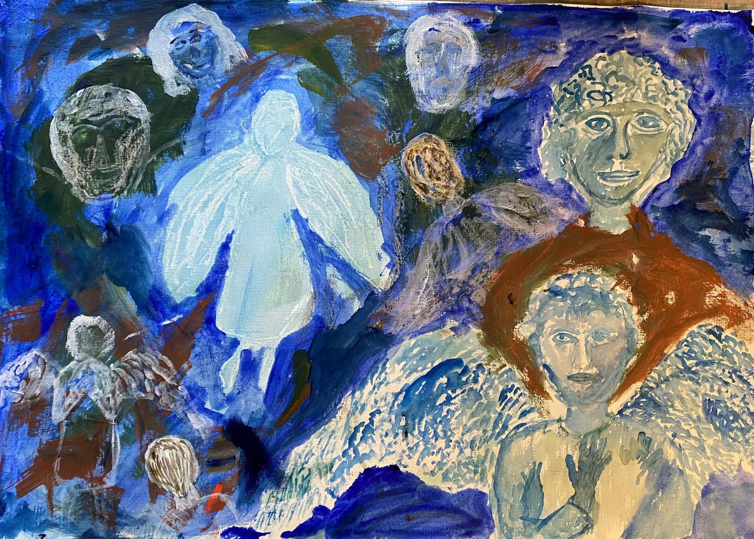 Angels, Oct ’24. Watercolour and gouache study on paper, 42 x 60 cms. Oct ’24