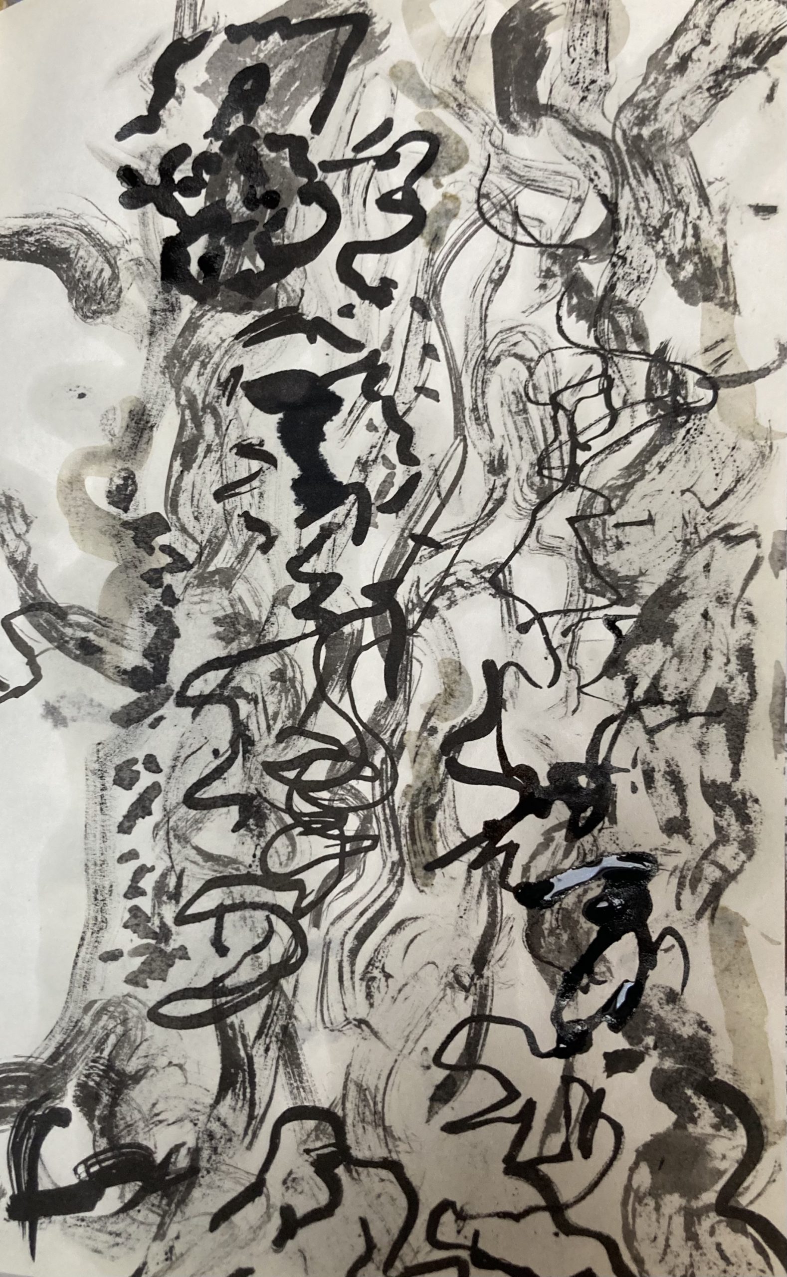 Willow Cones, mixed media on paper, 42 x 60 cms. Oct ’24.