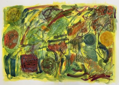 Abstract painting on paper, untitled, paper size 60 x84 cms. image size 43 x 67 cms. Feb ’25